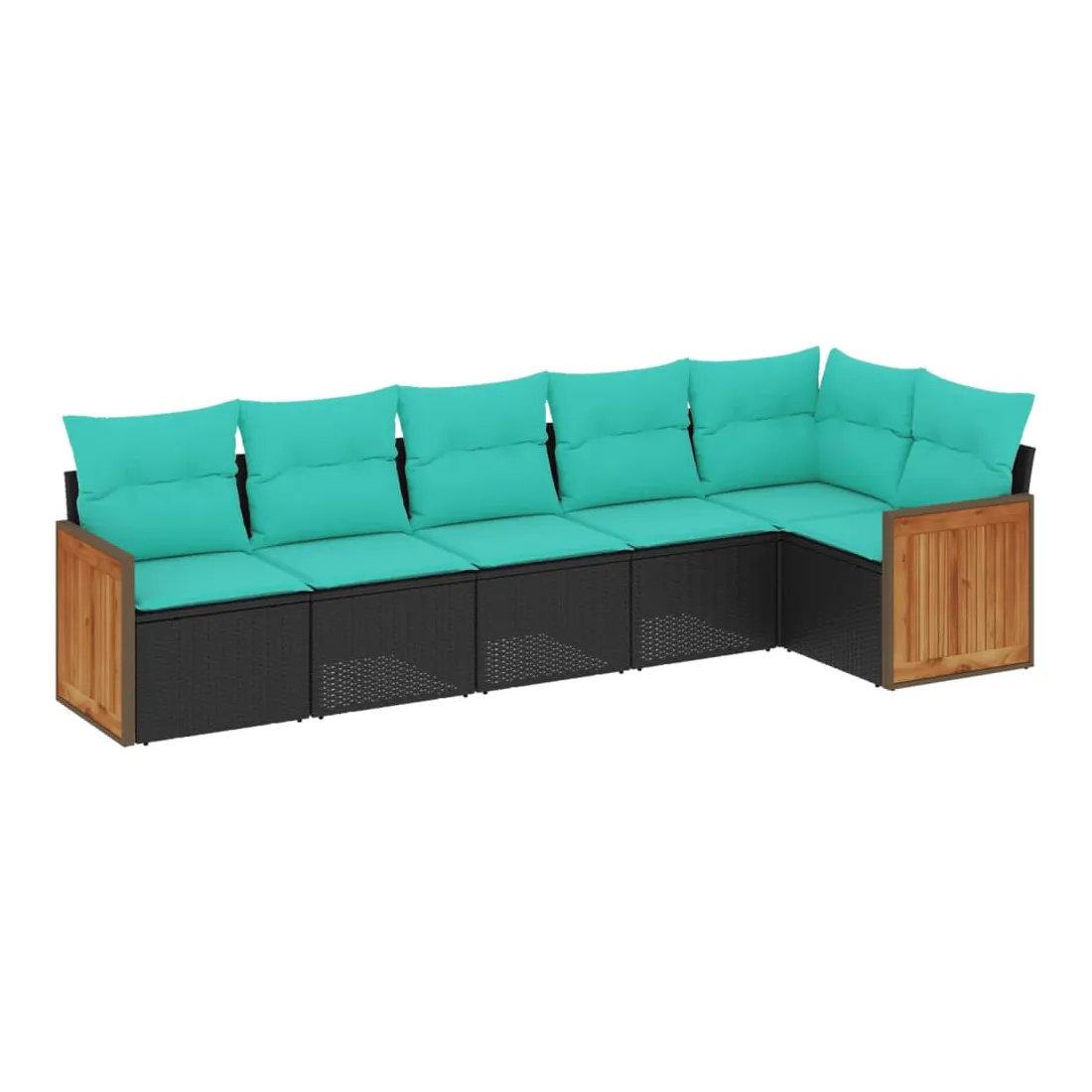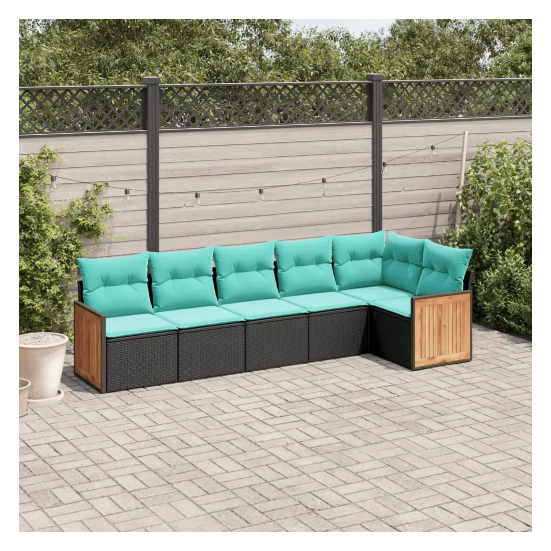 Salon de jardin 6 pcs avec coussins noir résine tressée