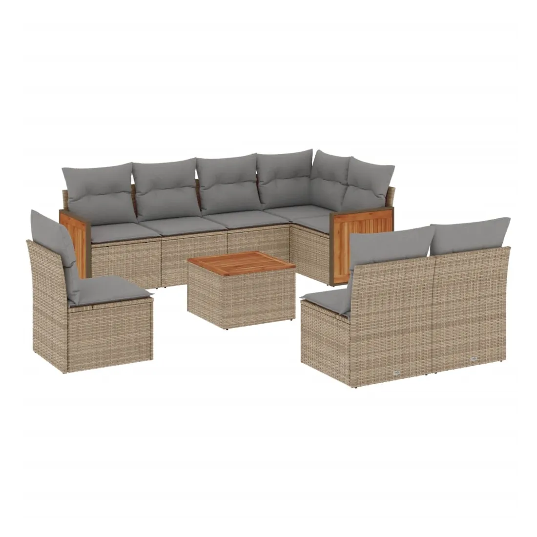 Cet ensemble de canapés de jardin est le complément parfait de votre arrière-cour, terrasse ou patio, offrant un espace confortable et accueillant pour discuter avec la famille et les amis ou simplement se détendre et profiter de l'extérieur. Matériau durable : la résine tressée, également connue sous le nom de poly rotin, est un matériau synthétique solide et nécessitant peu d'entretien qui ressemble au rotin naturel. Il est léger, facile à nettoyer et couramment utilisé pour les meubles d'extérieur en raison de sa durabilité et de ses propriétés de résistance aux intempéries.Expérience d'assise confortable : ce mobilier d'extérieur, doté de coussins épais, offre une expérience d'assise confortable.Dessus stable et facile à nettoyer : cette table de jardin a un dessus en bois d'acacia robuste, durable et facile à nettoyer avec un chiffon humide.Housse amovible et lavable : ces coussins de siège sont dotés de housses amovibles pour un lavage et un entretien faciles.Conception modulaire : cet ensemble de meubles d'extérieur a une conception modulaire, ce qui le rend complètement flexible et facile à déplacer, afin que vous puissiez créer un agencement de meubles d'extérieur personnalisé. Bon à savoir :Pour que vos meubles d'extérieur restent beaux, nous vous recommandons de les protéger avec une housse imperméable.