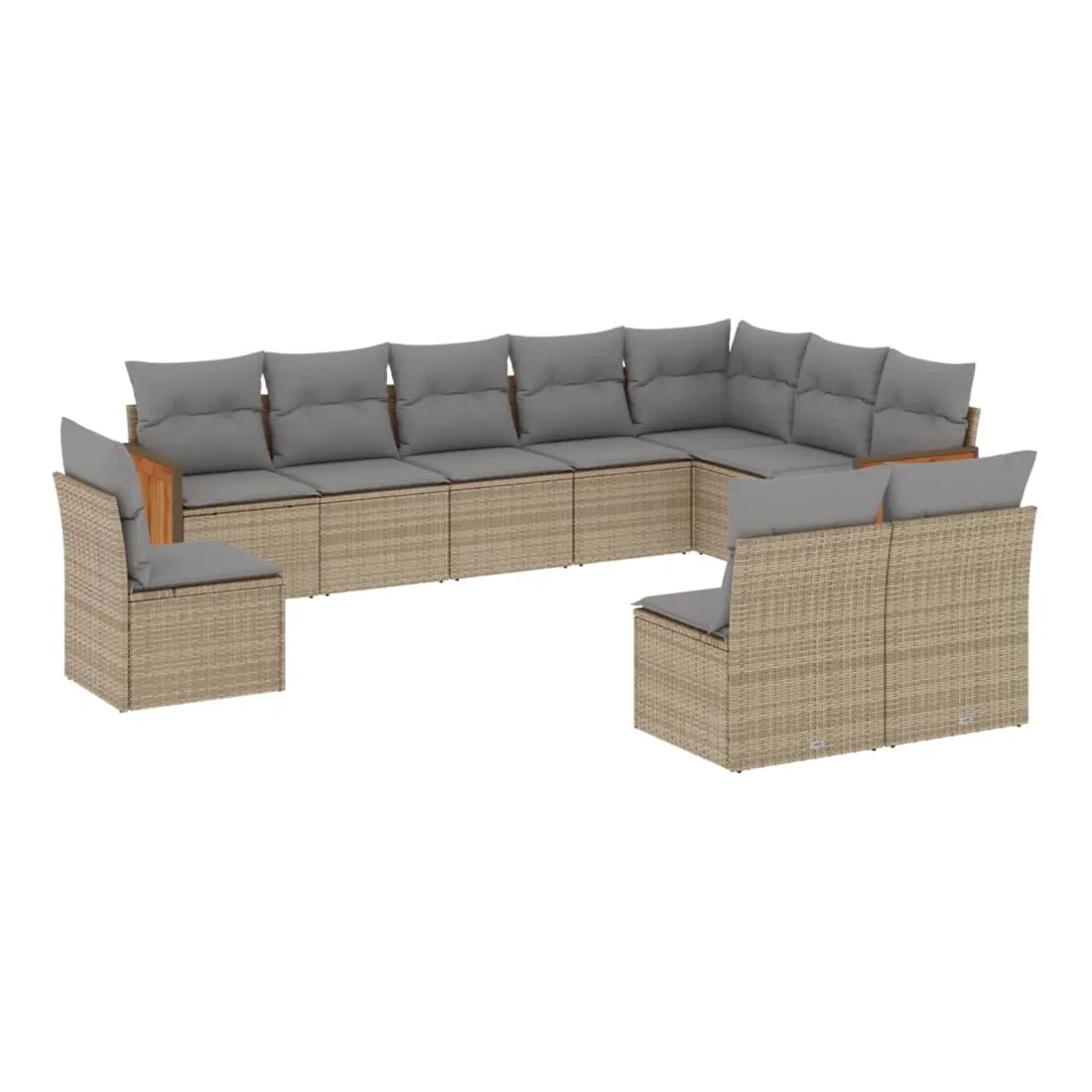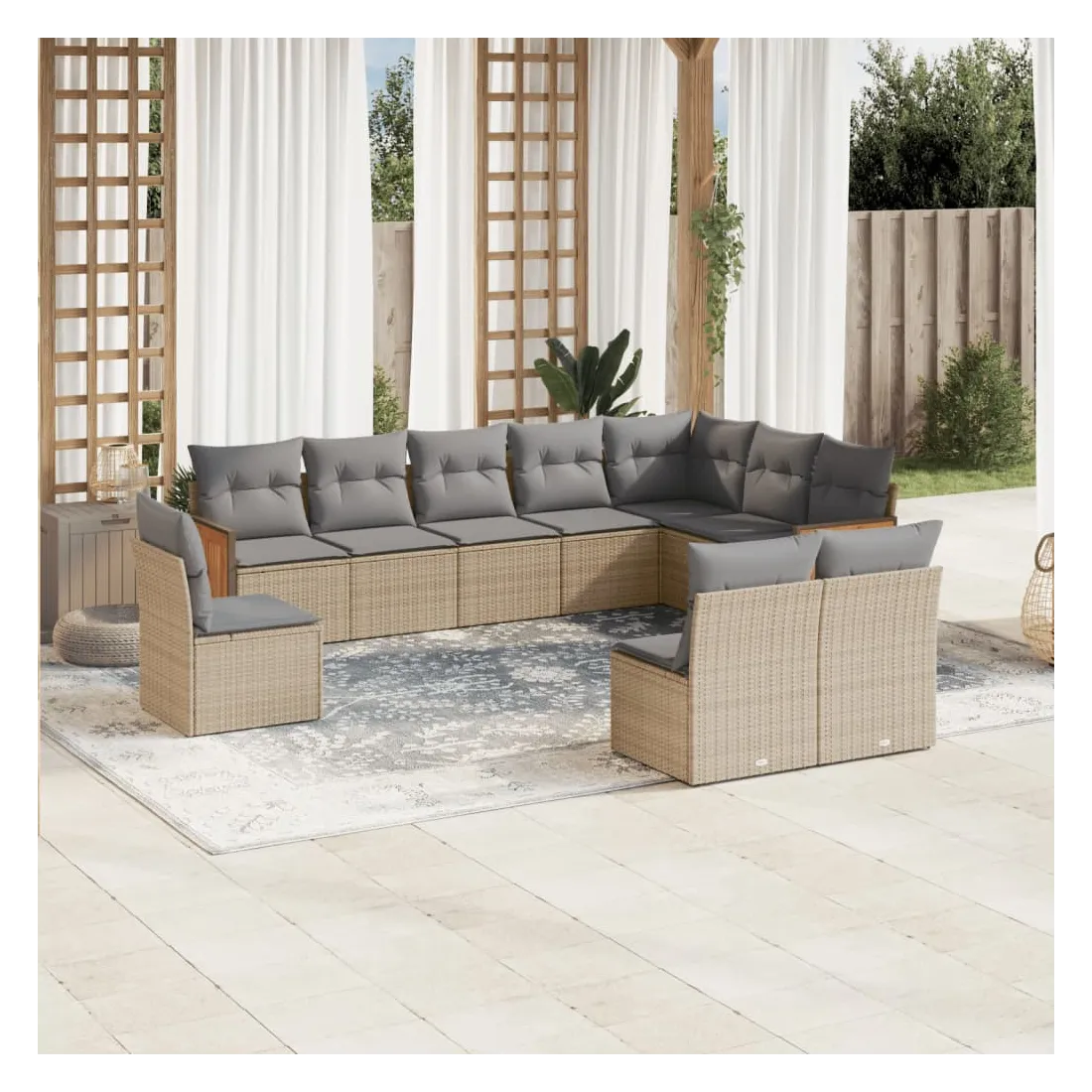 Cet ensemble de canapés de jardin est le complément parfait de votre arrière-cour, terrasse ou patio, offrant un espace confortable et accueillant pour discuter avec la famille et les amis ou simplement se détendre et profiter de l'extérieur. Matériau durable : la résine tressée, également connue sous le nom de poly rotin, est un matériau synthétique solide et nécessitant peu d'entretien qui ressemble au rotin naturel. Il est léger, facile à nettoyer et couramment utilisé pour les meubles d'extérieur en raison de sa durabilité et de ses propriétés de résistance aux intempéries.Expérience d'assise confortable : ce mobilier d'extérieur, doté de coussins épais, offre une expérience d'assise confortable.Housse amovible et lavable : ces coussins de siège sont dotés de housses amovibles pour un lavage et un entretien faciles.Conception modulaire : cet ensemble de meubles d'extérieur a une conception modulaire, ce qui le rend complètement flexible et facile à déplacer, afin que vous puissiez créer un agencement de meubles d'extérieur personnalisé. Bon à savoir :Pour que vos meubles d'extérieur restent beaux, nous vous recommandons de les protéger avec une housse imperméable.