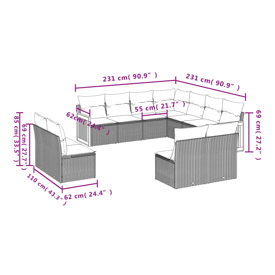 Cet ensemble de canapés de jardin est le complément parfait de votre arrière-cour, terrasse ou patio, offrant un espace confortable et accueillant pour discuter avec la famille et les amis ou simplement se détendre et profiter de l'extérieur. Matériau durable : la résine tressée, également connue sous le nom de poly rotin, est un matériau synthétique solide et nécessitant peu d'entretien qui ressemble au rotin naturel. Il est léger, facile à nettoyer et couramment utilisé pour les meubles d'extérieur en raison de sa durabilité et de ses propriétés de résistance aux intempéries.Expérience d'assise confortable : ce mobilier d'extérieur, doté de coussins épais, offre une expérience d'assise confortable.Housse amovible et lavable : ces coussins de siège sont dotés de housses amovibles pour un lavage et un entretien faciles.Conception modulaire : cet ensemble de meubles d'extérieur a une conception modulaire, ce qui le rend complètement flexible et facile à déplacer, afin que vous puissiez créer un agencement de meubles d'extérieur personnalisé. Bon à savoir :Pour que vos meubles d'extérieur restent beaux, nous vous recommandons de les protéger avec une housse imperméable.