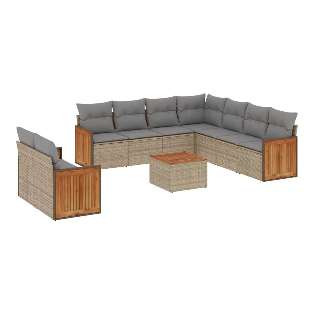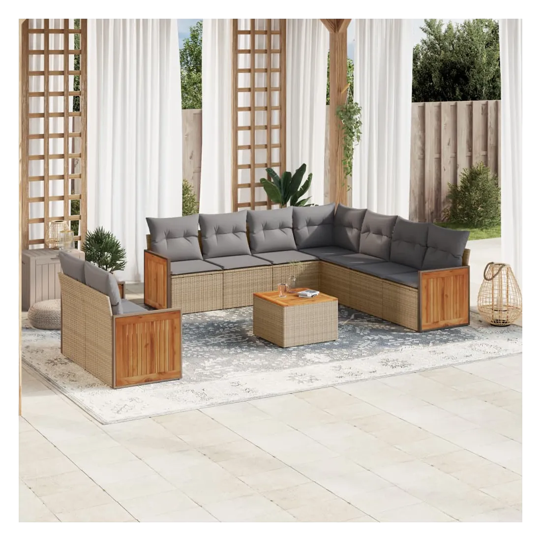 Cet ensemble de canapés de jardin est le complément parfait de votre arrière-cour, terrasse ou patio, offrant un espace confortable et accueillant pour discuter avec la famille et les amis ou simplement se détendre et profiter de l'extérieur. Matériau durable : la résine tressée, également connue sous le nom de poly rotin, est un matériau synthétique solide et nécessitant peu d'entretien qui ressemble au rotin naturel. Il est léger, facile à nettoyer et couramment utilisé pour les meubles d'extérieur en raison de sa durabilité et de ses propriétés de résistance aux intempéries.Expérience d'assise confortable : ce mobilier d'extérieur, doté de coussins épais, offre une expérience d'assise confortable.Dessus stable et facile à nettoyer : cette table de jardin a un dessus en bois d'acacia robuste, durable et facile à nettoyer avec un chiffon humide.Housse amovible et lavable : ces coussins de siège sont dotés de housses amovibles pour un lavage et un entretien faciles.Conception modulaire : cet ensemble de meubles d'extérieur a une conception modulaire, ce qui le rend complètement flexible et facile à déplacer, afin que vous puissiez créer un agencement de meubles d'extérieur personnalisé. Bon à savoir :Pour que vos meubles d'extérieur restent beaux, nous vous recommandons de les protéger avec une housse imperméable.