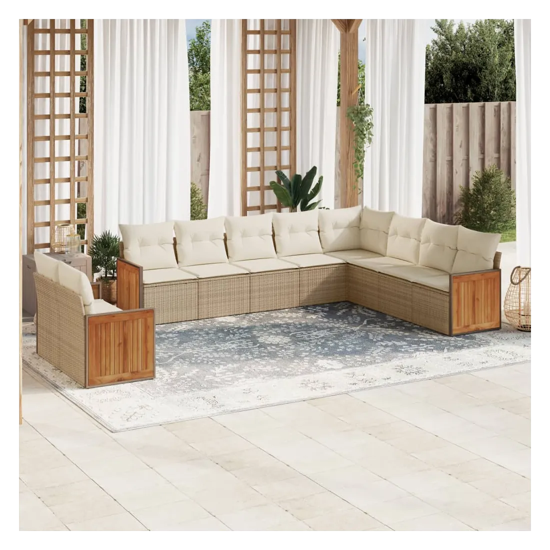 Cet ensemble de canapés de jardin est le complément parfait de votre arrière-cour, terrasse ou patio, offrant un espace confortable et accueillant pour discuter avec la famille et les amis ou simplement se détendre et profiter de l'extérieur. Matériau durable : la résine tressée, également connue sous le nom de poly rotin, est un matériau synthétique solide et nécessitant peu d'entretien qui ressemble au rotin naturel. Il est léger, facile à nettoyer et couramment utilisé pour les meubles d'extérieur en raison de sa durabilité et de ses propriétés de résistance aux intempéries.Expérience d'assise confortable : ce mobilier d'extérieur, doté de coussins épais, offre une expérience d'assise confortable.Housse amovible et lavable : ces coussins de siège sont dotés de housses amovibles pour un lavage et un entretien faciles.Conception modulaire : cet ensemble de meubles d'extérieur a une conception modulaire, ce qui le rend complètement flexible et facile à déplacer, afin que vous puissiez créer un agencement de meubles d'extérieur personnalisé. Bon à savoir :Pour que vos meubles d'extérieur restent beaux, nous vous recommandons de les protéger avec une housse imperméable.