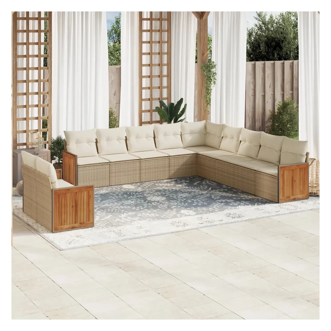 Cet ensemble de canapés de jardin est le complément parfait de votre arrière-cour, terrasse ou patio, offrant un espace confortable et accueillant pour discuter avec la famille et les amis ou simplement se détendre et profiter de l'extérieur. Matériau durable : la résine tressée, également connue sous le nom de poly rotin, est un matériau synthétique solide et nécessitant peu d'entretien qui ressemble au rotin naturel. Il est léger, facile à nettoyer et couramment utilisé pour les meubles d'extérieur en raison de sa durabilité et de ses propriétés de résistance aux intempéries.Expérience d'assise confortable : ce mobilier d'extérieur, doté de coussins épais, offre une expérience d'assise confortable.Housse amovible et lavable : ces coussins de siège sont dotés de housses amovibles pour un lavage et un entretien faciles.Conception modulaire : cet ensemble de meubles d'extérieur a une conception modulaire, ce qui le rend complètement flexible et facile à déplacer, afin que vous puissiez créer un agencement de meubles d'extérieur personnalisé. Bon à savoir :Pour que vos meubles d'extérieur restent beaux, nous vous recommandons de les protéger avec une housse imperméable.