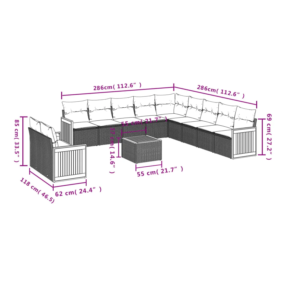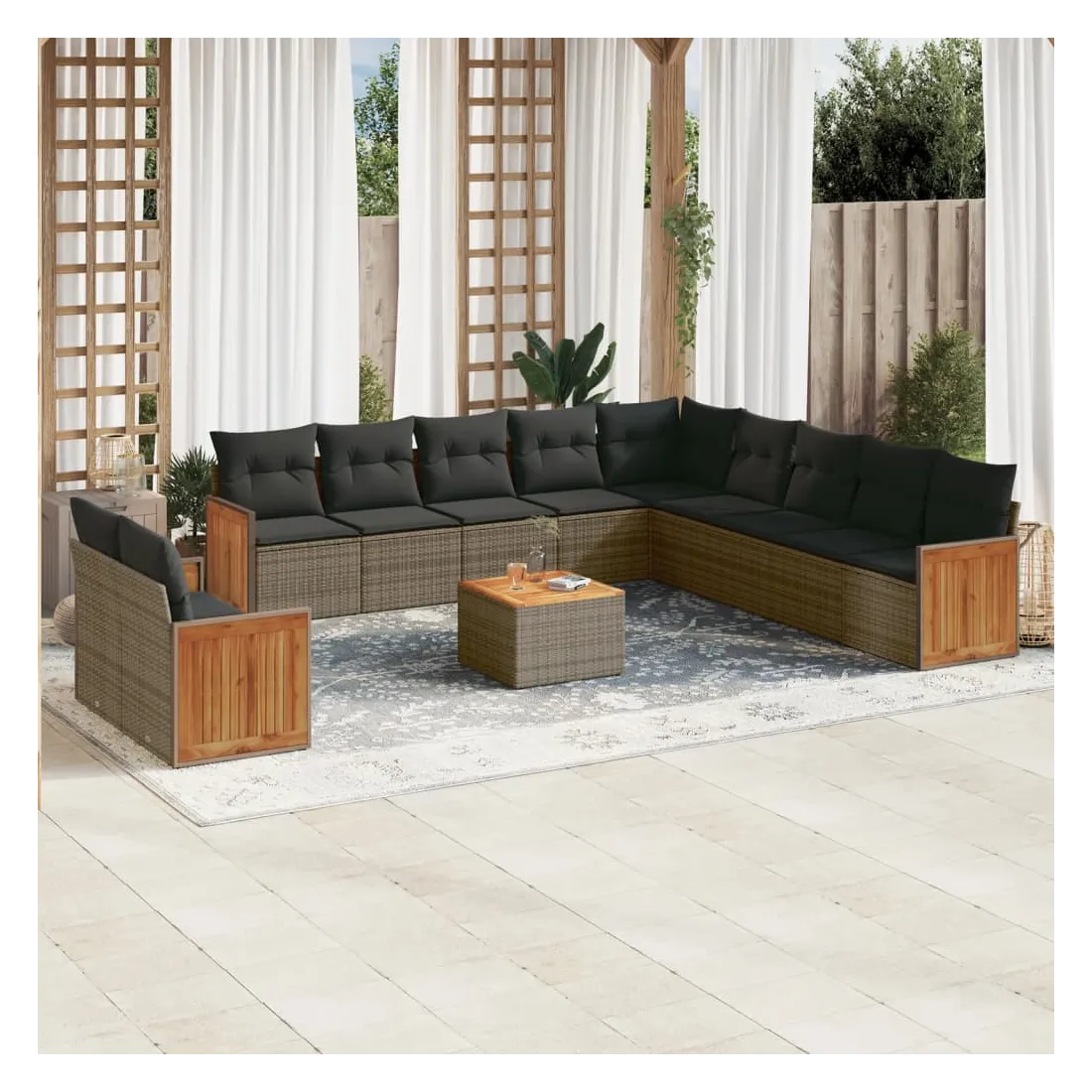 Cet ensemble de canapés de jardin est le complément parfait de votre arrière-cour, terrasse ou patio, offrant un espace confortable et accueillant pour discuter avec la famille et les amis ou simplement se détendre et profiter de l'extérieur. Matériau durable : la résine tressée, également connue sous le nom de poly rotin, est un matériau synthétique solide et nécessitant peu d'entretien qui ressemble au rotin naturel. Il est léger, facile à nettoyer et couramment utilisé pour les meubles d'extérieur en raison de sa durabilité et de ses propriétés de résistance aux intempéries.Expérience d'assise confortable : ce mobilier d'extérieur, doté de coussins épais, offre une expérience d'assise confortable.Dessus stable et facile à nettoyer : cette table de jardin a un dessus en bois d'acacia robuste, durable et facile à nettoyer avec un chiffon humide.Housse amovible et lavable : ces coussins de siège sont dotés de housses amovibles pour un lavage et un entretien faciles.Conception modulaire : cet ensemble de meubles d'extérieur a une conception modulaire, ce qui le rend complètement flexible et facile à déplacer, afin que vous puissiez créer un agencement de meubles d'extérieur personnalisé. Bon à savoir :Pour que vos meubles d'extérieur restent beaux, nous vous recommandons de les protéger avec une housse imperméable.