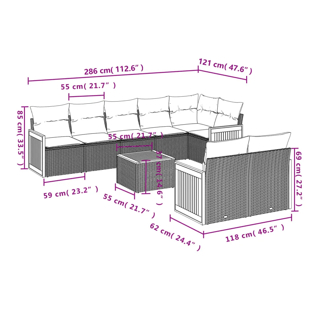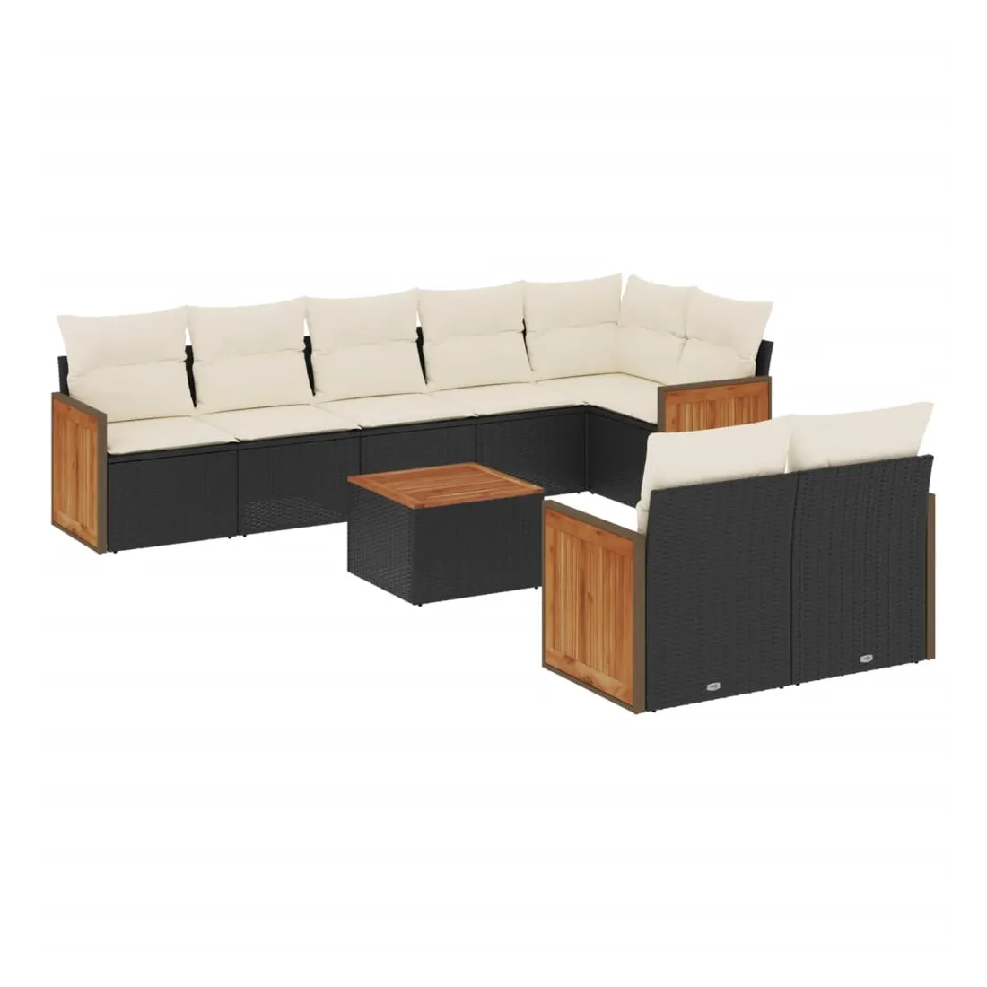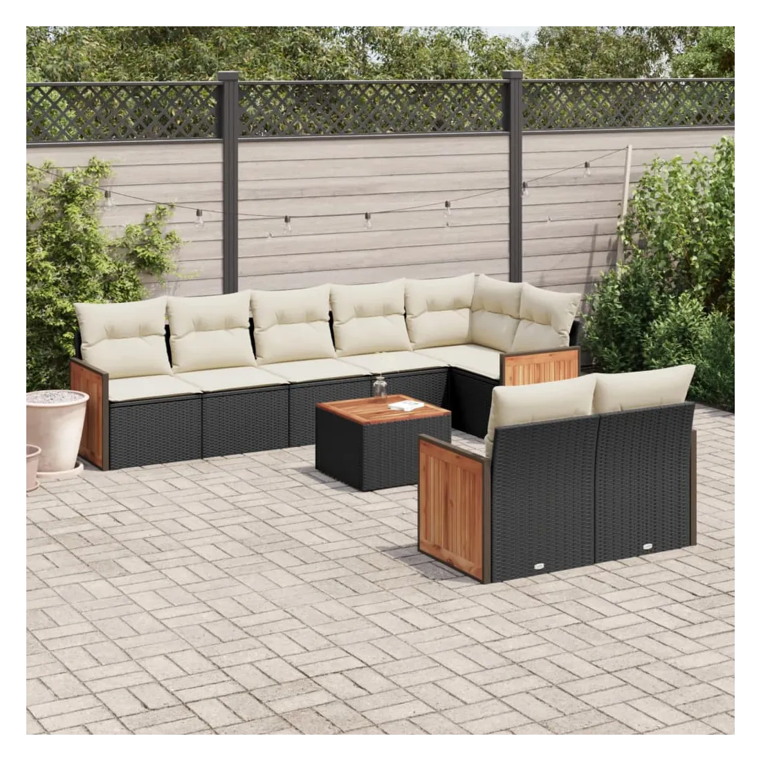 Salon de jardin 9 pcs avec coussins noir résine tressée