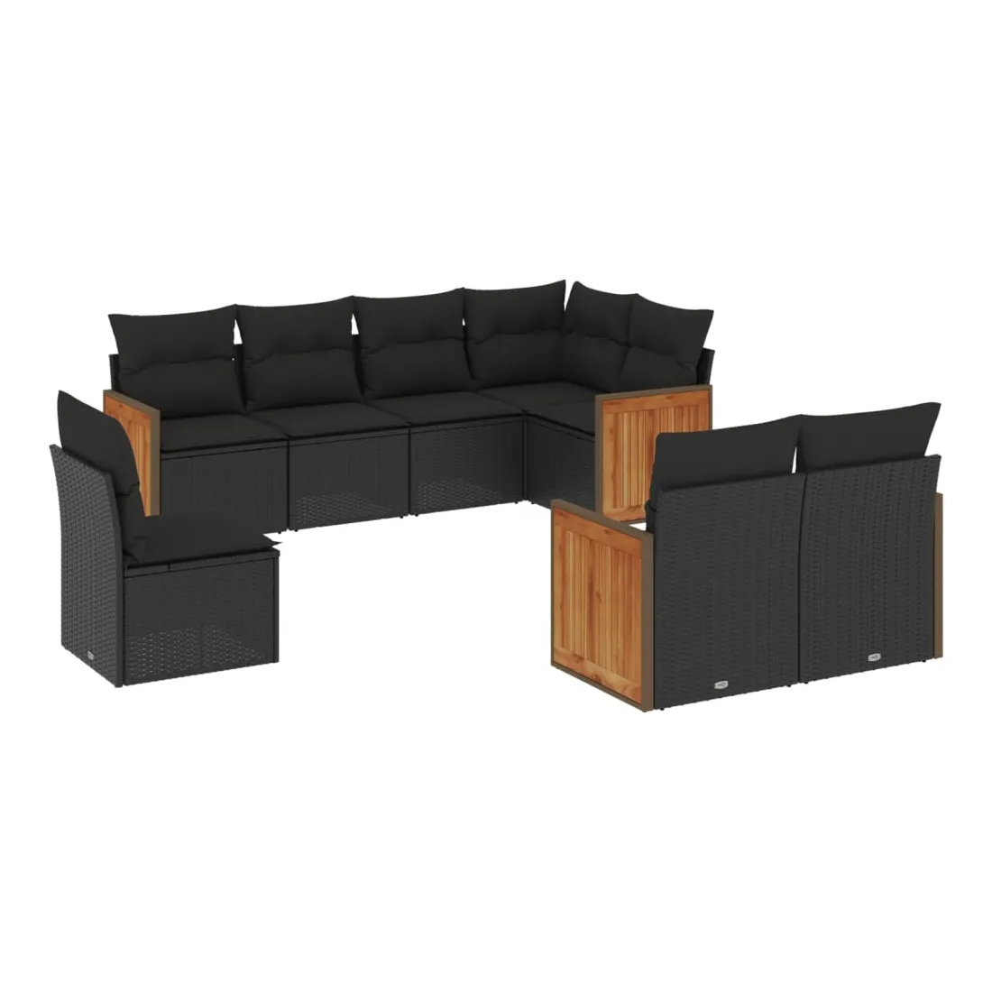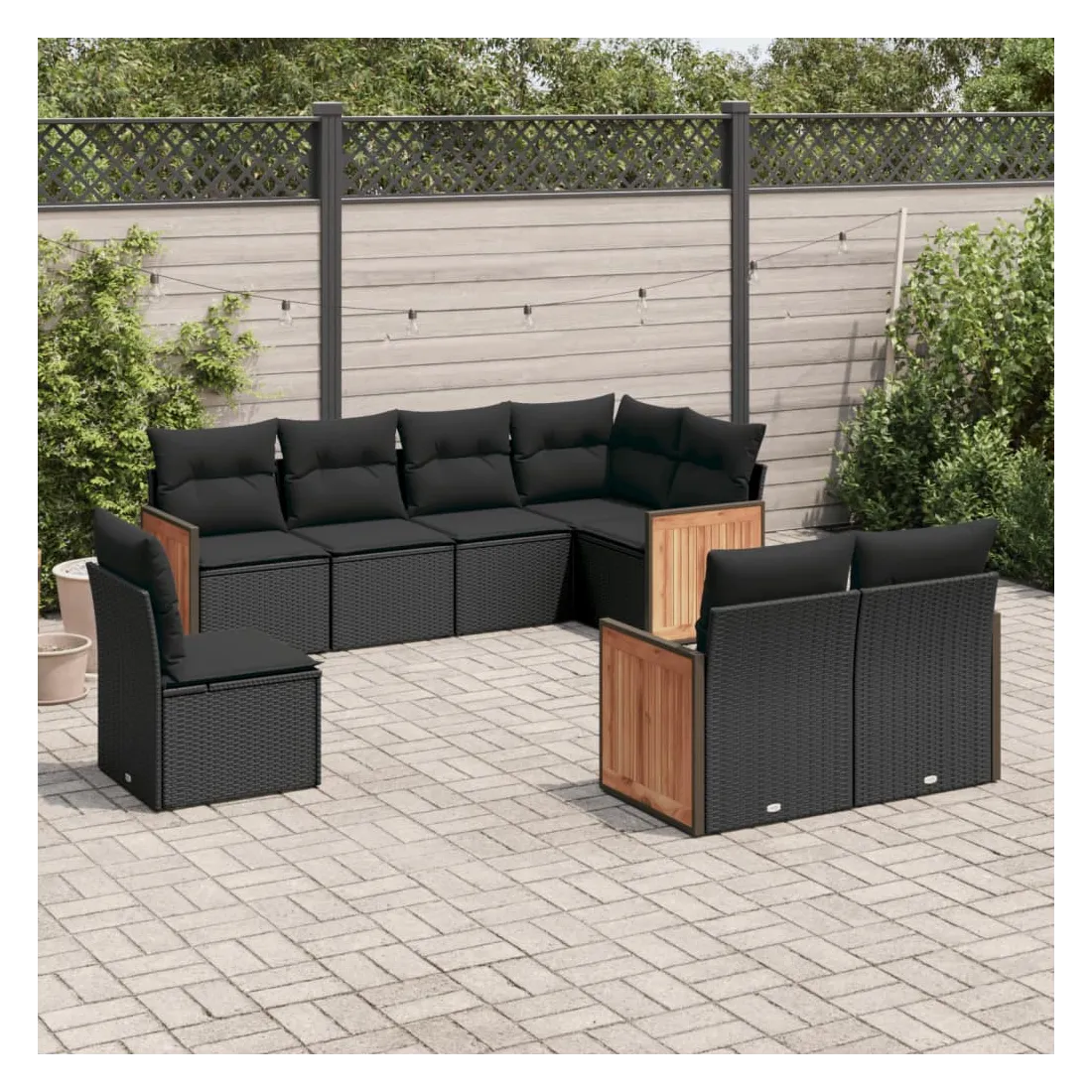 Salon de jardin 8 pcs avec coussins noir résine tressée
