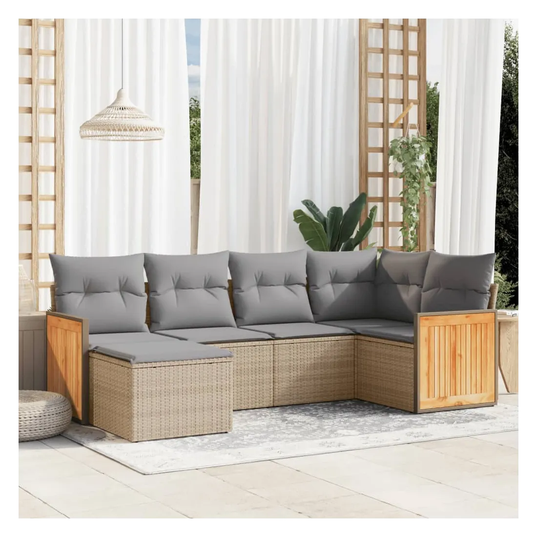 Cet ensemble de canapés de jardin est le complément parfait de votre arrière-cour, terrasse ou patio, offrant un espace confortable et accueillant pour discuter avec la famille et les amis ou simplement se détendre et profiter de l'extérieur. Matériau durable : la résine tressée, également connue sous le nom de poly rotin, est un matériau synthétique solide et nécessitant peu d'entretien qui ressemble au rotin naturel. Il est léger, facile à nettoyer et couramment utilisé pour les meubles d'extérieur en raison de sa durabilité et de ses propriétés de résistance aux intempéries.Expérience d'assise confortable : ce mobilier d'extérieur, doté de coussins épais, offre une expérience d'assise confortable.Housse amovible et lavable : ces coussins de siège sont dotés de housses amovibles pour un lavage et un entretien faciles.Conception modulaire : cet ensemble de meubles d'extérieur a une conception modulaire, ce qui le rend complètement flexible et facile à déplacer, afin que vous puissiez créer un agencement de meubles d'extérieur personnalisé. Bon à savoir :Pour que vos meubles d'extérieur restent beaux, nous vous recommandons de les protéger avec une housse imperméable.
