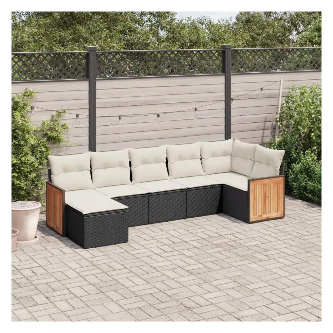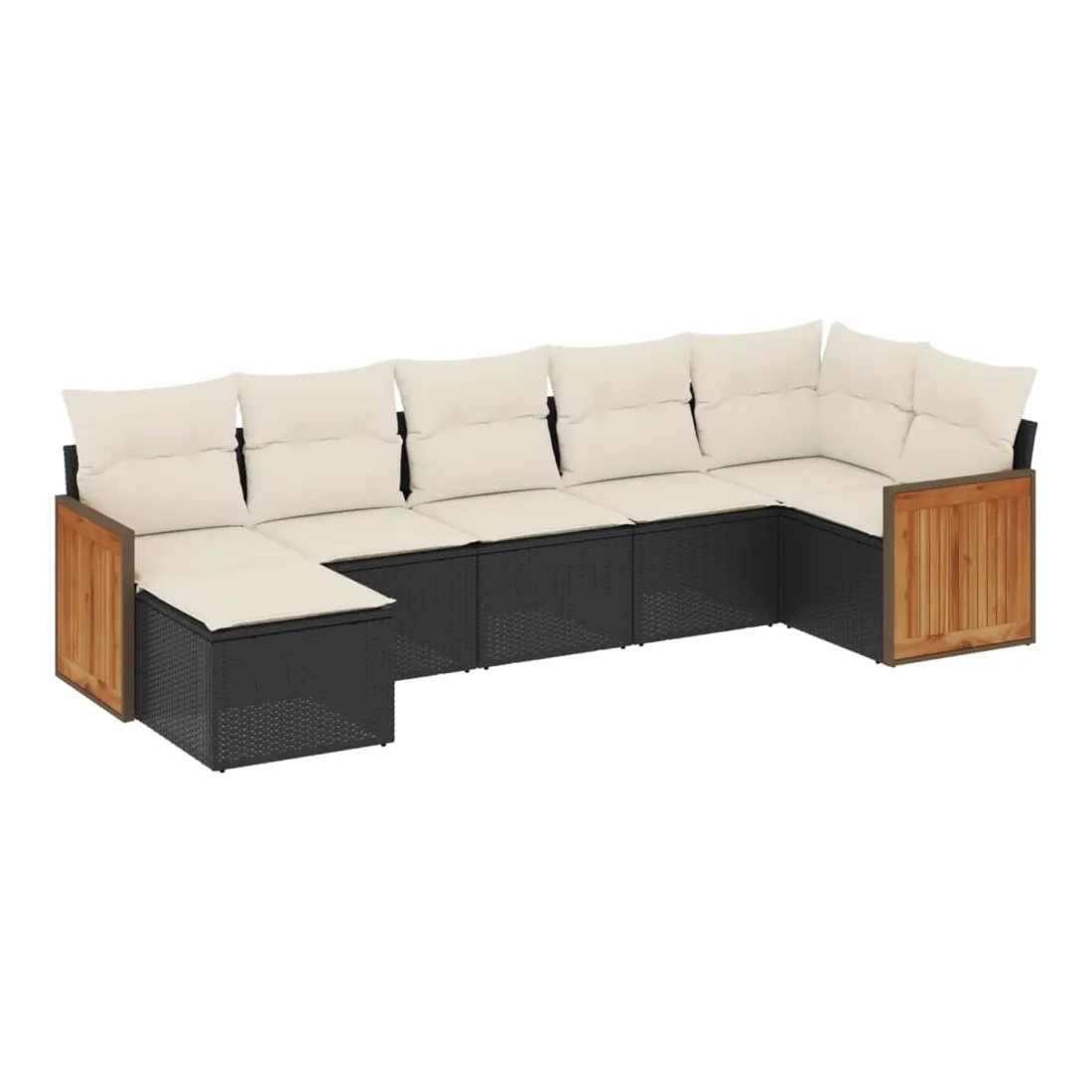 Salon de jardin 7 pcs avec coussins noir résine tressée