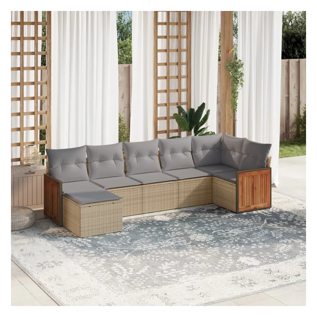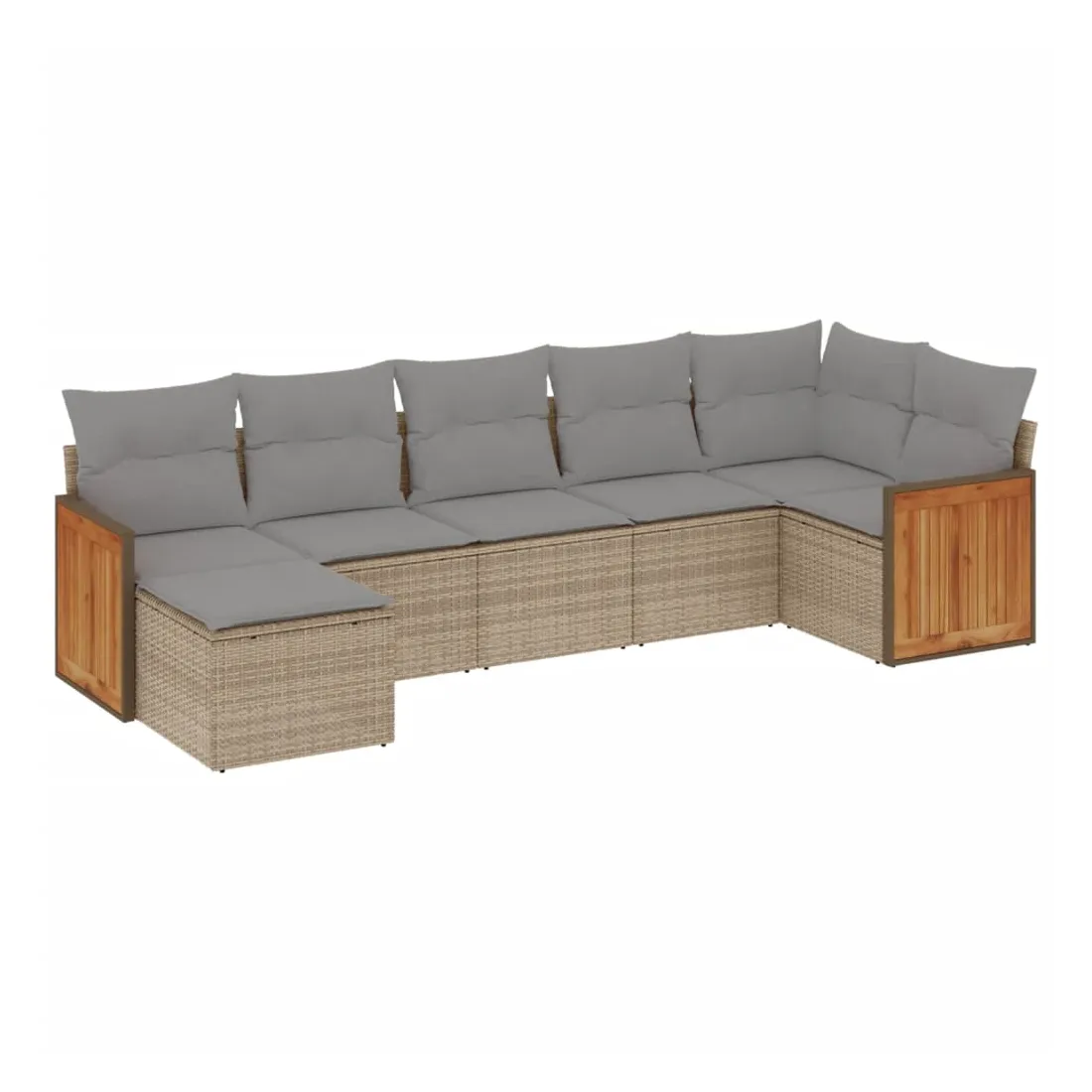Salon de jardin avec coussins 7 pcs beige résine tressée