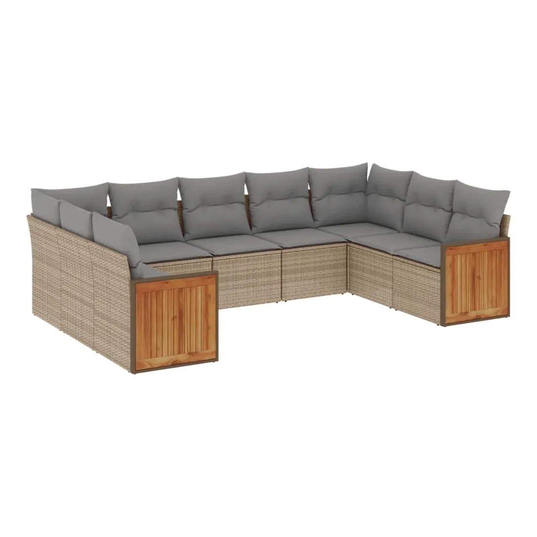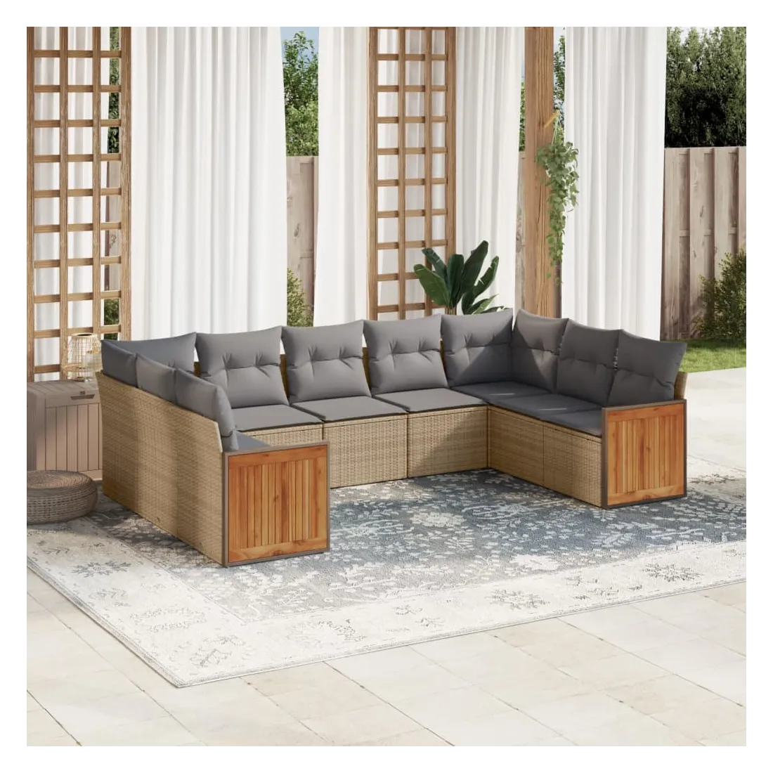 Salon de jardin avec coussins 9 pcs beige résine tressée