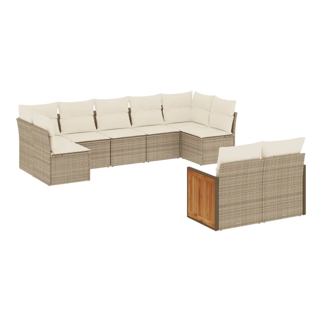 Salon de jardin avec coussins 9 pcs beige résine tressée