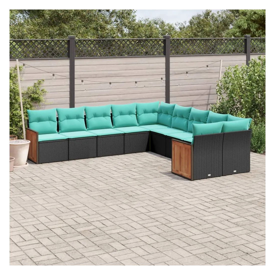 Salon de jardin 10 pcs avec coussins noir résine tressée