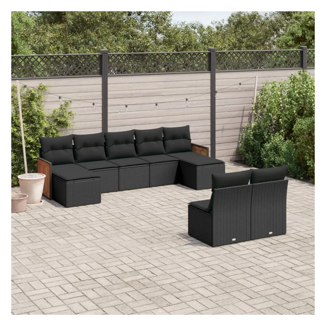 Cet ensemble de canapés de jardin est le complément parfait de votre arrière-cour, terrasse ou patio, offrant un espace confortable et accueillant pour discuter avec la famille et les amis ou simplement se détendre et profiter de l'extérieur. Matériau durable : la résine tressée, également connue sous le nom de poly rotin, est un matériau synthétique solide et nécessitant peu d'entretien qui ressemble au rotin naturel. Il est léger, facile à nettoyer et couramment utilisé pour les meubles d'extérieur en raison de sa durabilité et de ses propriétés de résistance aux intempéries.Expérience d'assise confortable : ce mobilier d'extérieur, doté de coussins épais, offre une expérience d'assise confortable.Housse amovible et lavable : ces coussins de siège sont dotés de housses amovibles pour un lavage et un entretien faciles.Conception modulaire : cet ensemble de meubles d'extérieur a une conception modulaire, ce qui le rend complètement flexible et facile à déplacer, afin que vous puissiez créer un agencement de meubles d'extérieur personnalisé. Bon à savoir :Pour que vos meubles d'extérieur restent beaux, nous vous recommandons de les protéger avec une housse imperméable.