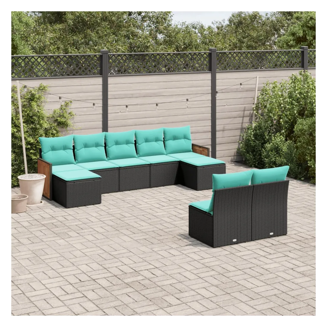 Cet ensemble de canapés de jardin est le complément parfait de votre arrière-cour, terrasse ou patio, offrant un espace confortable et accueillant pour discuter avec la famille et les amis ou simplement se détendre et profiter de l'extérieur. Matériau durable : la résine tressée, également connue sous le nom de poly rotin, est un matériau synthétique solide et nécessitant peu d'entretien qui ressemble au rotin naturel. Elle est légère, facile à nettoyer et couramment utilisée pour les meubles d'extérieur en raison de sa durabilité et de ses propriétés de résistance aux intempéries.Expérience d'assise confortable : ce mobilier d'extérieur, doté de coussins épais, offre une expérience d'assise confortable.Housse amovible et lavable : ces coussins de siège sont dotés de housses amovibles pour un lavage et un entretien faciles.Conception modulaire : cet ensemble de meubles d'extérieur a une conception modulaire, ce qui le rend complètement flexible et facile à déplacer, afin que vous puissiez créer un agencement de meubles d'extérieur personnalisé. Bon à savoir :Pour que vos meubles d'extérieur restent beaux, nous vous recommandons de les protéger avec une housse imperméable.