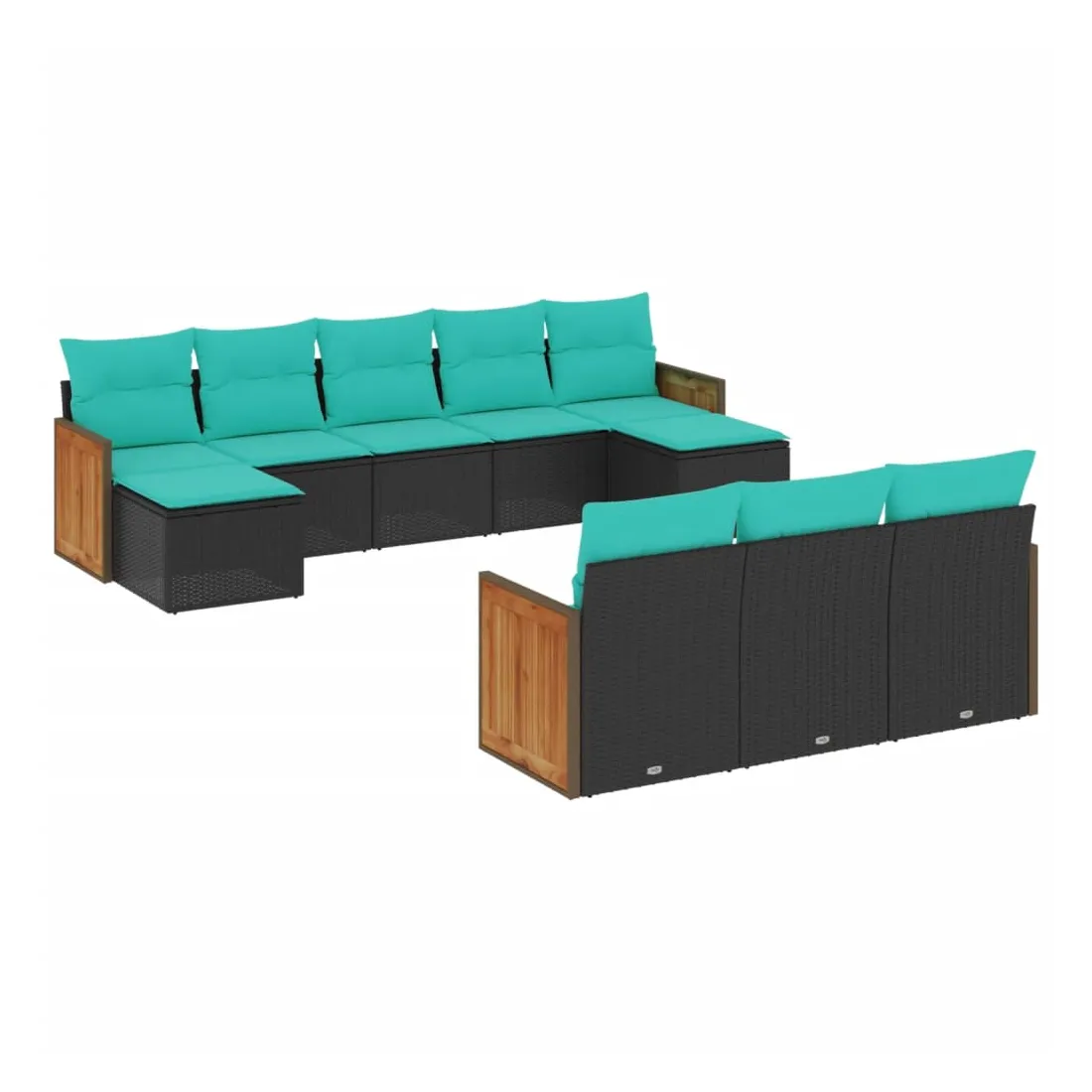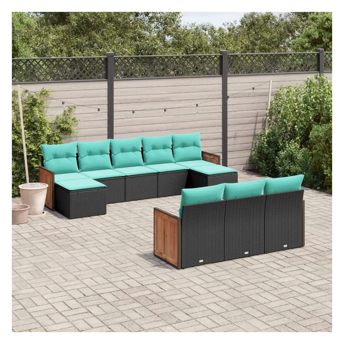 Cet ensemble de canapés de jardin est le complément parfait de votre arrière-cour, terrasse ou patio, offrant un espace confortable et accueillant pour discuter avec la famille et les amis ou simplement se détendre et profiter de l'extérieur. Matériau durable : la résine tressée, également connue sous le nom de poly rotin, est un matériau synthétique solide et nécessitant peu d'entretien qui ressemble au rotin naturel. Elle est légère, facile à nettoyer et couramment utilisée pour les meubles d'extérieur en raison de sa durabilité et de ses propriétés de résistance aux intempéries.Expérience d'assise confortable : ce mobilier d'extérieur, doté de coussins épais, offre une expérience d'assise confortable.Housse amovible et lavable : ces coussins de siège sont dotés de housses amovibles pour un lavage et un entretien faciles.Conception modulaire : cet ensemble de meubles d'extérieur a une conception modulaire, ce qui le rend complètement flexible et facile à déplacer, afin que vous puissiez créer un agencement de meubles d'extérieur personnalisé. Bon à savoir :Pour que vos meubles d'extérieur restent beaux, nous vous recommandons de les protéger avec une housse imperméable.
