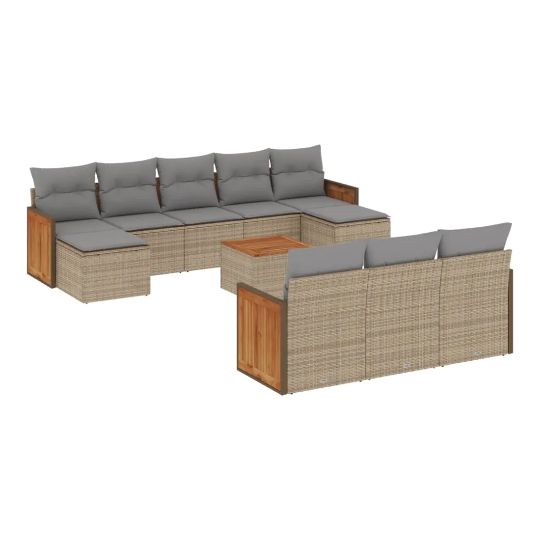 Cet ensemble de canapés de jardin est le complément parfait de votre arrière-cour, terrasse ou patio, offrant un espace confortable et accueillant pour discuter avec la famille et les amis ou simplement se détendre et profiter de l'extérieur. Matériau durable : la résine tressée, également connue sous le nom de poly rotin, est un matériau synthétique solide et nécessitant peu d'entretien qui ressemble au rotin naturel. Il est léger, facile à nettoyer et couramment utilisé pour les meubles d'extérieur en raison de sa durabilité et de ses propriétés de résistance aux intempéries.Expérience d'assise confortable : ce mobilier d'extérieur, doté de coussins épais, offre une expérience d'assise confortable.Dessus stable et facile à nettoyer : cette table de jardin a un dessus en bois d'acacia robuste, durable et facile à nettoyer avec un chiffon humide.Housse amovible et lavable : ces coussins de siège sont dotés de housses amovibles pour un lavage et un entretien faciles.Conception modulaire : cet ensemble de meubles d'extérieur a une conception modulaire, ce qui le rend complètement flexible et facile à déplacer, afin que vous puissiez créer un agencement de meubles d'extérieur personnalisé. Bon à savoir :Pour que vos meubles d'extérieur restent beaux, nous vous recommandons de les protéger avec une housse imperméable.