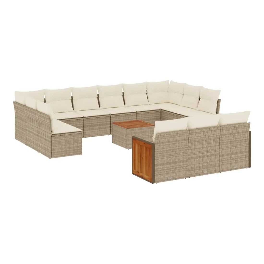 Cet ensemble de canapés de jardin est le complément parfait de votre arrière-cour, terrasse ou patio, offrant un espace confortable et accueillant pour discuter avec la famille et les amis ou simplement se détendre et profiter de l'extérieur. Matériau durable : la résine tressée, également connue sous le nom de poly rotin, est un matériau synthétique solide et nécessitant peu d'entretien qui ressemble au rotin naturel. Il est léger, facile à nettoyer et couramment utilisé pour les meubles d'extérieur en raison de sa durabilité et de ses propriétés de résistance aux intempéries.Expérience d'assise confortable : ce mobilier d'extérieur, doté de coussins épais, offre une expérience d'assise confortable.Dessus stable et facile à nettoyer : cette table de jardin a un dessus en bois d'acacia robuste, durable et facile à nettoyer avec un chiffon humide.Housse amovible et lavable : ces coussins de siège sont dotés de housses amovibles pour un lavage et un entretien faciles.Conception modulaire : cet ensemble de meubles d'extérieur a une conception modulaire, ce qui le rend complètement flexible et facile à déplacer, afin que vous puissiez créer un agencement de meubles d'extérieur personnalisé. Bon à savoir :Pour que vos meubles d'extérieur restent beaux, nous vous recommandons de les protéger avec une housse imperméable.