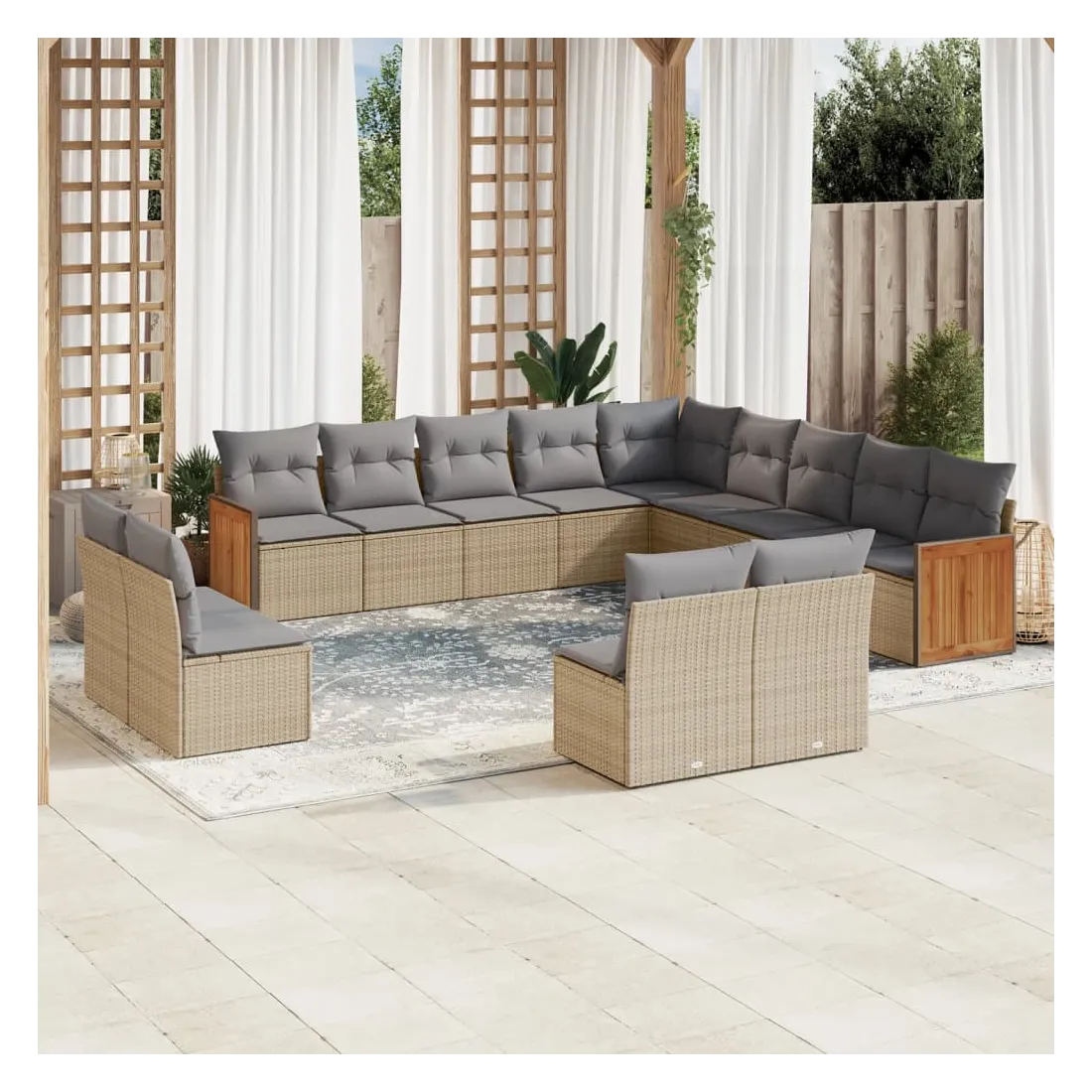 Cet ensemble de canapés de jardin est le complément parfait de votre arrière-cour, terrasse ou patio, offrant un espace confortable et accueillant pour discuter avec la famille et les amis ou simplement se détendre et profiter de l'extérieur. Matériau durable : la résine tressée, également connue sous le nom de poly rotin, est un matériau synthétique solide et nécessitant peu d'entretien qui ressemble au rotin naturel. Il est léger, facile à nettoyer et couramment utilisé pour les meubles d'extérieur en raison de sa durabilité et de ses propriétés de résistance aux intempéries.Expérience d'assise confortable : ce mobilier d'extérieur, doté de coussins épais, offre une expérience d'assise confortable.Housse amovible et lavable : ces coussins de siège sont dotés de housses amovibles pour un lavage et un entretien faciles.Conception modulaire : cet ensemble de meubles d'extérieur a une conception modulaire, ce qui le rend complètement flexible et facile à déplacer, afin que vous puissiez créer un agencement de meubles d'extérieur personnalisé. Bon à savoir :Pour que vos meubles d'extérieur restent beaux, nous vous recommandons de les protéger avec une housse imperméable.