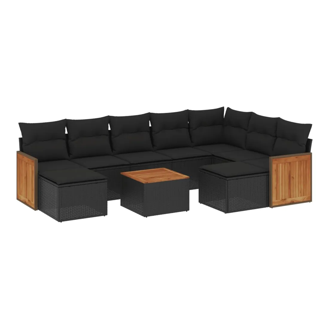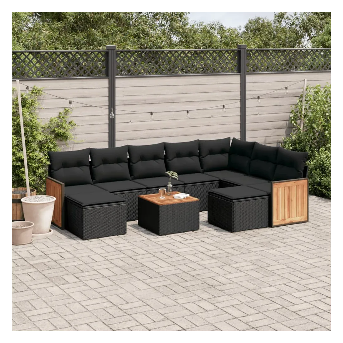 Cet ensemble de canapés de jardin est le complément parfait de votre arrière-cour, terrasse ou patio, offrant un espace confortable et accueillant pour discuter avec la famille et les amis ou simplement se détendre et profiter de l'extérieur. Matériau durable : la résine tressée, également connue sous le nom de poly rotin, est un matériau synthétique solide et nécessitant peu d'entretien qui ressemble au rotin naturel. Il est léger, facile à nettoyer et couramment utilisé pour les meubles d'extérieur en raison de sa durabilité et de ses propriétés de résistance aux intempéries.Expérience d'assise confortable : ce mobilier d'extérieur, doté de coussins épais, offre une expérience d'assise confortable.Dessus stable et facile à nettoyer : cette table de jardin a un dessus en bois d'acacia robuste, durable et facile à nettoyer avec un chiffon humide.Housse amovible et lavable : ces coussins de siège sont dotés de housses amovibles pour un lavage et un entretien faciles.Conception modulaire : cet ensemble de meubles d'extérieur a une conception modulaire, ce qui le rend complètement flexible et facile à déplacer, afin que vous puissiez créer un agencement de meubles d'extérieur personnalisé. Bon à savoir :Pour que vos meubles d'extérieur restent beaux, nous vous recommandons de les protéger avec une housse imperméable.