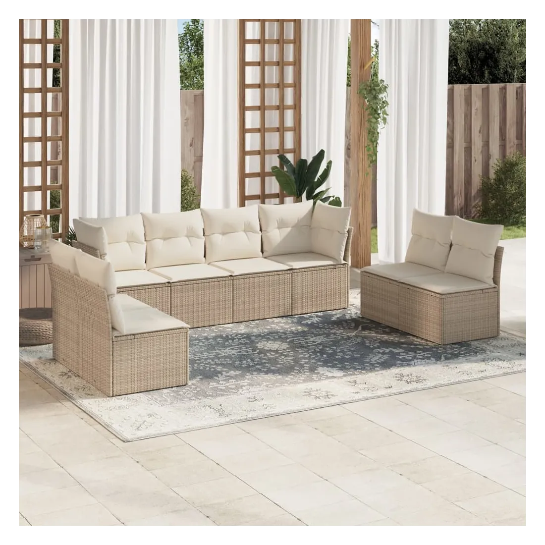 Cet ensemble de canapés de jardin est le complément parfait de votre arrière-cour, terrasse ou patio, offrant un espace confortable et accueillant pour discuter avec la famille et les amis ou simplement se détendre et profiter de l'extérieur. Matériau durable : la résine tressée, également connue sous le nom de poly rotin, est un matériau synthétique solide et nécessitant peu d'entretien qui ressemble au rotin naturel. Il est léger, facile à nettoyer et couramment utilisé pour les meubles d'extérieur en raison de sa durabilité et de ses propriétés de résistance aux intempéries.Fonction de rangement avec sac résistant à l'eau : chaque siège de jardin dispose d'un espace de rangement sous l'assise, complété par un sac résistant à l'eau pour ranger les coussins, les jouets et d'autres objets. Les sacs intérieurs sont dotés d'un couvercle et peuvent être solidement fixés aux sièges à l'aide de bandes auto-agrippantes pour plus de stabilité.Housse amovible et lavable : ces coussins de siège sont dotés de housses amovibles pour un lavage et un entretien faciles.Conception modulaire : cet ensemble de meubles d'extérieur a une conception modulaire, ce qui le rend complètement flexible et facile à déplacer, afin que vous puissiez créer un agencement de meubles d'extérieur personnalisé. Bon à savoir :Pour que vos meubles d'extérieur restent beaux, nous vous recommandons de les protéger avec une housse imperméable.