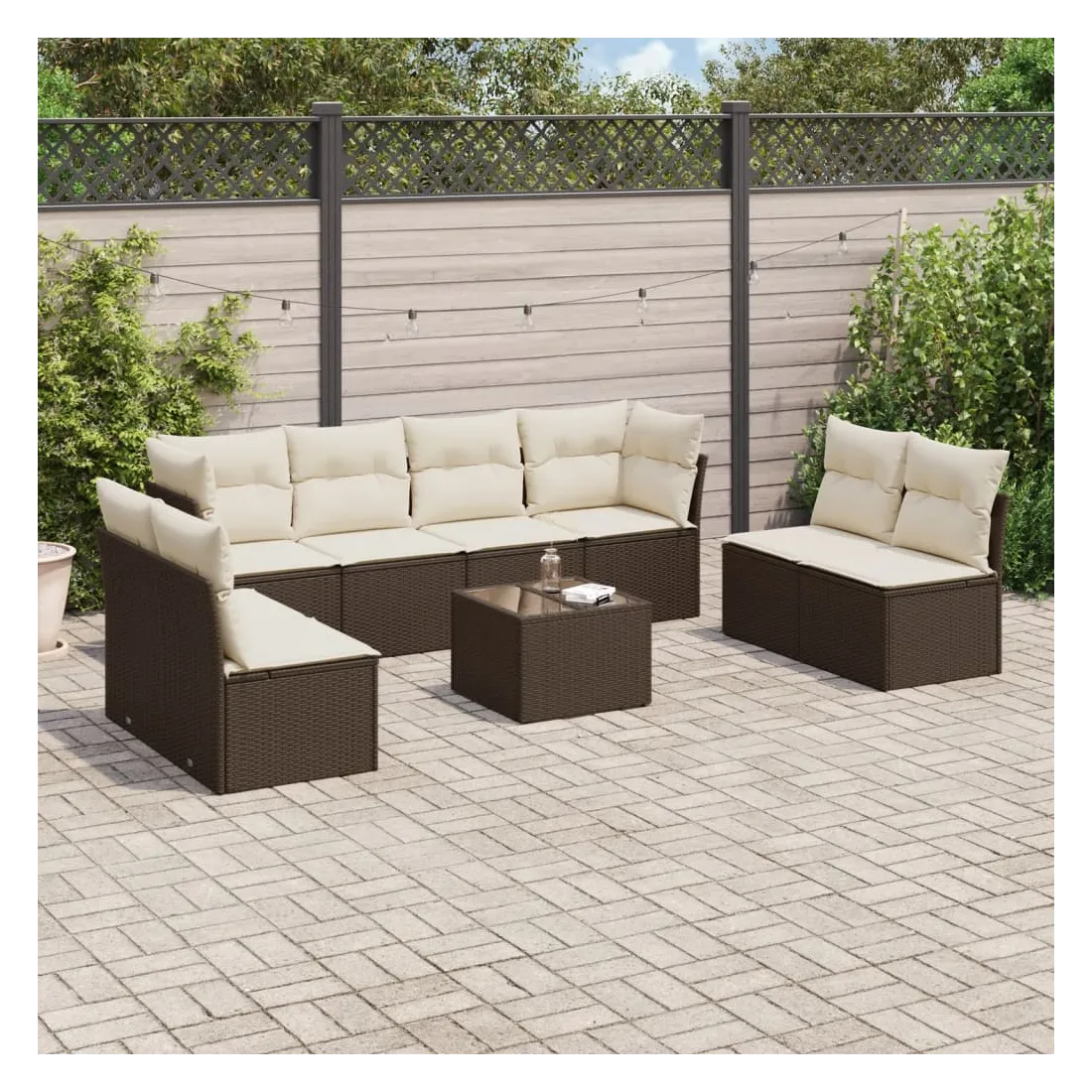 Cet ensemble de canapés de jardin est le complément parfait de votre arrière-cour, terrasse ou patio, offrant un espace confortable et accueillant pour discuter avec la famille et les amis ou simplement se détendre et profiter de l'extérieur. Matériau durable : la résine tressée, également connue sous le nom de poly rotin, est un matériau synthétique solide et nécessitant peu d'entretien qui ressemble au rotin naturel. Il est léger, facile à nettoyer et couramment utilisé pour les meubles d'extérieur en raison de sa durabilité et de ses propriétés de résistance aux intempéries.Fonction de rangement avec sac résistant à l'eau : chaque siège de jardin dispose d'un espace de rangement sous l'assise, complété par un sac résistant à l'eau pour ranger les coussins, les jouets et d'autres objets. Les sacs intérieurs sont dotés d'un couvercle et peuvent être solidement fixés aux sièges à l'aide de bandes auto-agrippantes pour plus de stabilité.Dessus en verre : le dessus de la table d'extérieur est fabriqué en verre trempé solide et durable, ce qui le rend facile à nettoyer avec un chiffon humide et ajoute une touche d'élégance à votre espace extérieur.Housse amovible et lavable : ces coussins de siège sont dotés de housses amovibles pour un lavage et un entretien faciles.Conception modulaire : cet ensemble de meubles d'extérieur a une conception modulaire, ce qui le rend complètement flexible et facile à déplacer, afin que vous puissiez créer un agencement de meubles d'extérieur personnalisé. Bon à savoir :Pour que vos meubles d'extérieur restent beaux, nous vous recommandons de les protéger avec une housse imperméable.