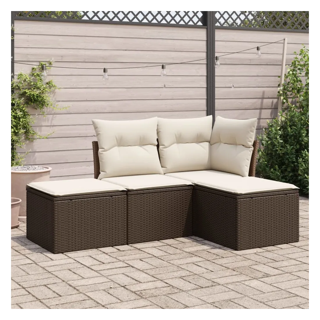 Cet ensemble de canapés de jardin est le complément parfait de votre arrière-cour, terrasse ou patio, offrant un espace confortable et accueillant pour discuter avec la famille et les amis ou simplement se détendre et profiter de l'extérieur. Matériau durable : la résine tressée, également connue sous le nom de poly rotin, est un matériau synthétique solide et nécessitant peu d'entretien qui ressemble au rotin naturel. Il est léger, facile à nettoyer et couramment utilisé pour les meubles d'extérieur en raison de sa durabilité et de ses propriétés de résistance aux intempéries.Fonction de rangement avec sac résistant à l'eau : chaque siège de jardin dispose d'un espace de rangement sous l'assise, complété par un sac résistant à l'eau pour ranger les coussins, les jouets et d'autres objets. Les sacs intérieurs sont dotés d'un couvercle et peuvent être solidement fixés aux sièges à l'aide de bandes auto-agrippantes pour plus de stabilité.Housse amovible et lavable : ces coussins de siège sont dotés de housses amovibles pour un lavage et un entretien faciles.Conception modulaire : cet ensemble de meubles d'extérieur a une conception modulaire, ce qui le rend complètement flexible et facile à déplacer, afin que vous puissiez créer un agencement de meubles d'extérieur personnalisé. Bon à savoir :Pour que vos meubles d'extérieur restent beaux, nous vous recommandons de les protéger avec une housse imperméable.
