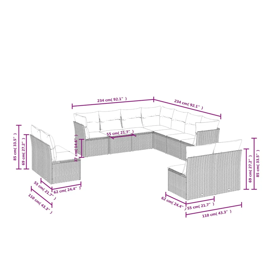 - Dimensions totales du canapé 7 places : 234 x 234 x 69 cm (l x P x H)