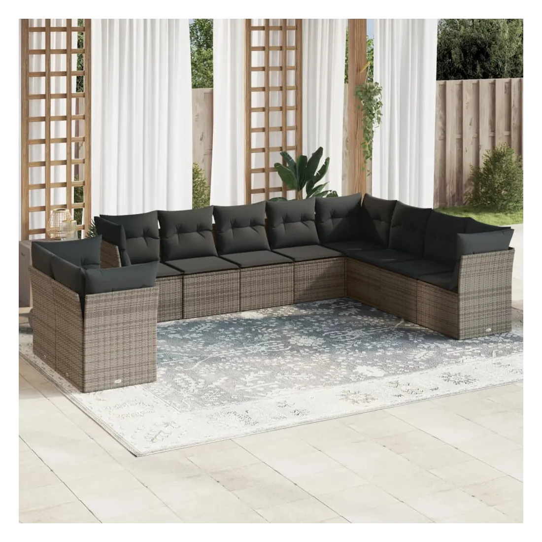 Cet ensemble de canapés de jardin est le complément parfait de votre arrière-cour, terrasse ou patio, offrant un espace confortable et accueillant pour discuter avec la famille et les amis ou simplement se détendre et profiter de l'extérieur. Matériau durable : la résine tressée, également connue sous le nom de poly rotin, est un matériau synthétique solide et nécessitant peu d'entretien qui ressemble au rotin naturel. Il est léger, facile à nettoyer et couramment utilisé pour les meubles d'extérieur en raison de sa durabilité et de ses propriétés de résistance aux intempéries.Fonction de rangement avec sac résistant à l'eau : chaque siège de jardin dispose d'un espace de rangement sous l'assise, complété par un sac résistant à l'eau pour ranger les coussins, les jouets et d'autres objets. Les sacs intérieurs sont dotés d'un couvercle et peuvent être solidement fixés aux sièges à l'aide de bandes auto-agrippantes pour plus de stabilité.Housse amovible et lavable : ces coussins de siège sont dotés de housses amovibles pour un lavage et un entretien faciles.Conception modulaire : cet ensemble de meubles d'extérieur a une conception modulaire, ce qui le rend complètement flexible et facile à déplacer, afin que vous puissiez créer un agencement de meubles d'extérieur personnalisé. Bon à savoir :Pour que vos meubles d'extérieur restent beaux, nous vous recommandons de les protéger avec une housse imperméable.