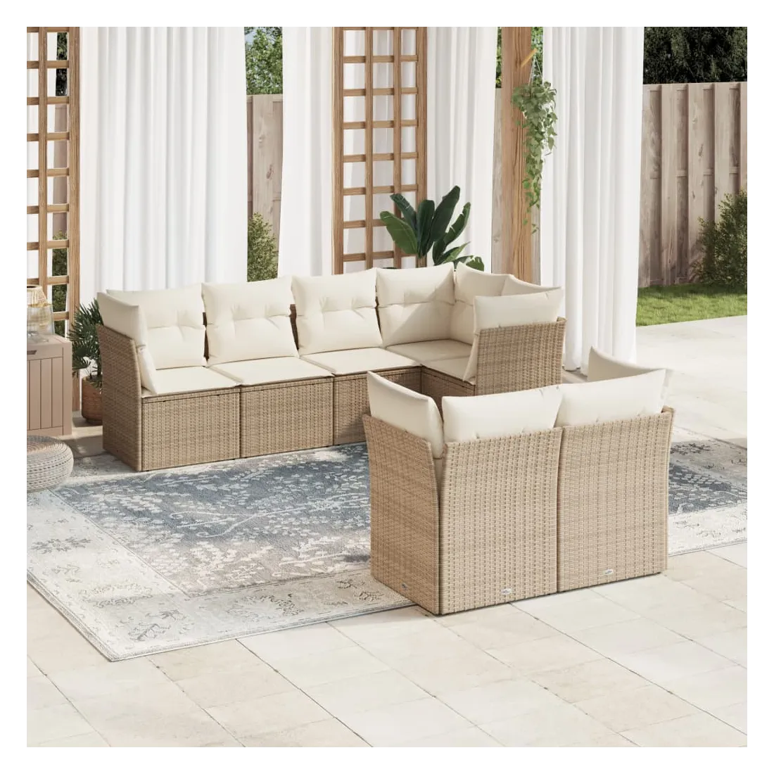 Cet ensemble de canapés de jardin est le complément parfait de votre arrière-cour, terrasse ou patio, offrant un espace confortable et accueillant pour discuter avec la famille et les amis ou simplement se détendre et profiter de l'extérieur. Matériau durable : la résine tressée, également connue sous le nom de poly rotin, est un matériau synthétique solide et nécessitant peu d'entretien qui ressemble au rotin naturel. Il est léger, facile à nettoyer et couramment utilisé pour les meubles d'extérieur en raison de sa durabilité et de ses propriétés de résistance aux intempéries.Fonction de rangement avec sac résistant à l'eau : chaque siège de jardin dispose d'un espace de rangement sous l'assise, complété par un sac résistant à l'eau pour ranger les coussins, les jouets et d'autres objets. Les sacs intérieurs sont dotés d'un couvercle et peuvent être solidement fixés aux sièges à l'aide de bandes auto-agrippantes pour plus de stabilité.Housse amovible et lavable : ces coussins de siège sont dotés de housses amovibles pour un lavage et un entretien faciles.Conception modulaire : cet ensemble de meubles d'extérieur a une conception modulaire, ce qui le rend complètement flexible et facile à déplacer, afin que vous puissiez créer un agencement de meubles d'extérieur personnalisé. Bon à savoir :Pour que vos meubles d'extérieur restent beaux, nous vous recommandons de les protéger avec une housse imperméable.