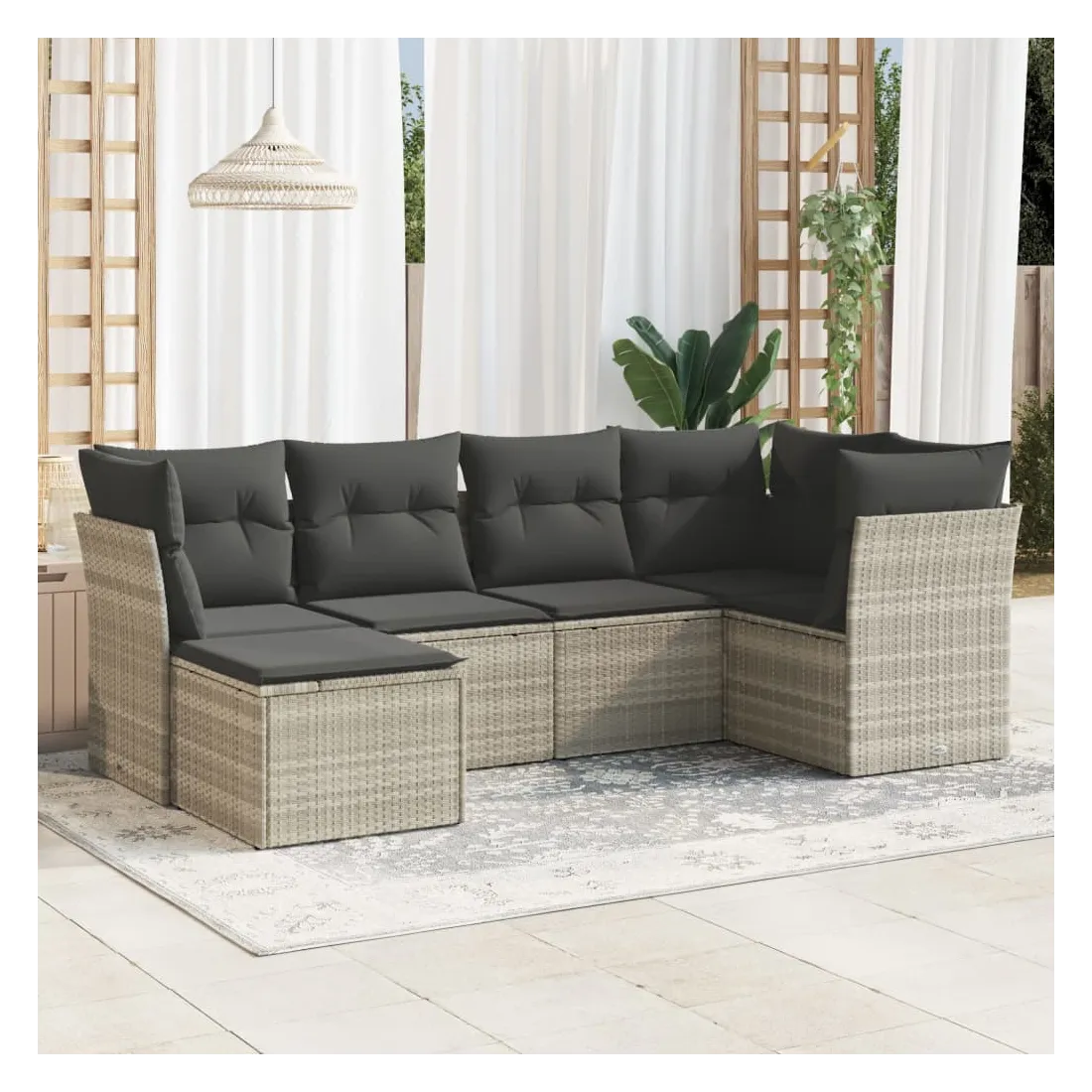 Cet ensemble de canapés de jardin est le complément parfait de votre arrière-cour, terrasse ou patio, offrant un espace confortable et accueillant pour discuter avec la famille et les amis ou simplement se détendre et profiter de l'extérieur. Matériau durable : la résine tressée, également connue sous le nom de poly rotin, est un matériau synthétique solide et nécessitant peu d'entretien qui ressemble au rotin naturel. Il est léger, facile à nettoyer et couramment utilisé pour les meubles d'extérieur en raison de sa durabilité et de ses propriétés de résistance aux intempéries.Fonction de rangement avec sac résistant à l'eau : chaque siège de jardin dispose d'un espace de rangement sous l'assise, complété par un sac résistant à l'eau pour ranger les coussins, les jouets et d'autres objets. Les sacs intérieurs sont dotés d'un couvercle et peuvent être solidement fixés aux sièges à l'aide de bandes auto-agrippantes pour plus de stabilité.Housse amovible et lavable : ces coussins de siège sont dotés de housses amovibles pour un lavage et un entretien faciles.Conception modulaire : cet ensemble de meubles d'extérieur a une conception modulaire, ce qui le rend complètement flexible et facile à déplacer, afin que vous puissiez créer un agencement de meubles d'extérieur personnalisé. Bon à savoir :Pour que vos meubles d'extérieur restent beaux, nous vous recommandons de les protéger avec une housse imperméable.