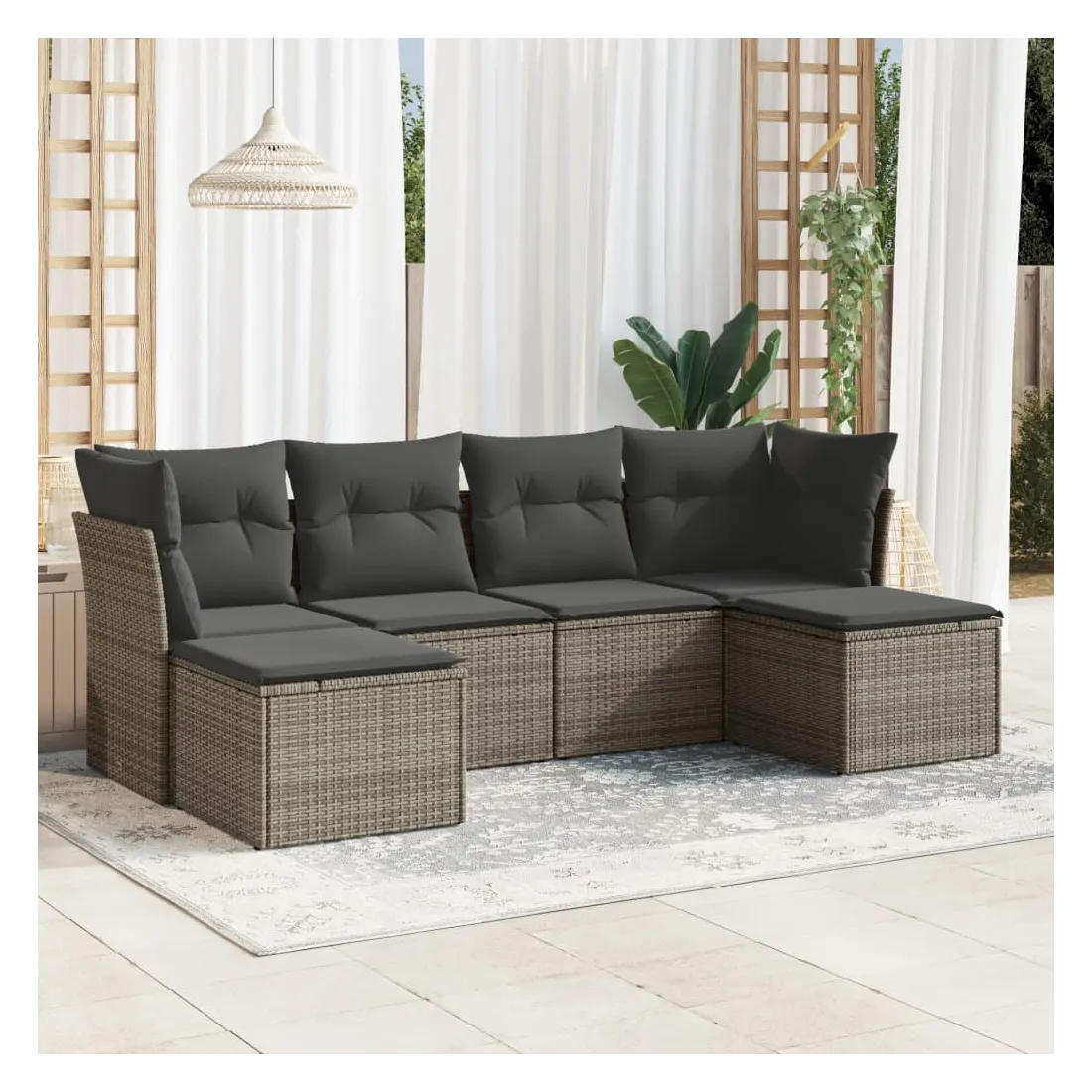 Cet ensemble de canapés de jardin est le complément parfait de votre arrière-cour, terrasse ou patio, offrant un espace confortable et accueillant pour discuter avec la famille et les amis ou simplement se détendre et profiter de l'extérieur. Matériau durable : la résine tressée, également connue sous le nom de poly rotin, est un matériau synthétique solide et nécessitant peu d'entretien qui ressemble au rotin naturel. Il est léger, facile à nettoyer et couramment utilisé pour les meubles d'extérieur en raison de sa durabilité et de ses propriétés de résistance aux intempéries.Fonction de rangement avec sac résistant à l'eau : chaque siège de jardin dispose d'un espace de rangement sous l'assise, complété par un sac résistant à l'eau pour ranger les coussins, les jouets et d'autres objets. Les sacs intérieurs sont dotés d'un couvercle et peuvent être solidement fixés aux sièges à l'aide de bandes auto-agrippantes pour plus de stabilité.Housse amovible et lavable : ces coussins de siège sont dotés de housses amovibles pour un lavage et un entretien faciles.Conception modulaire : cet ensemble de meubles d'extérieur a une conception modulaire, ce qui le rend complètement flexible et facile à déplacer, afin que vous puissiez créer un agencement de meubles d'extérieur personnalisé. Bon à savoir :Pour que vos meubles d'extérieur restent beaux, nous vous recommandons de les protéger avec une housse imperméable.