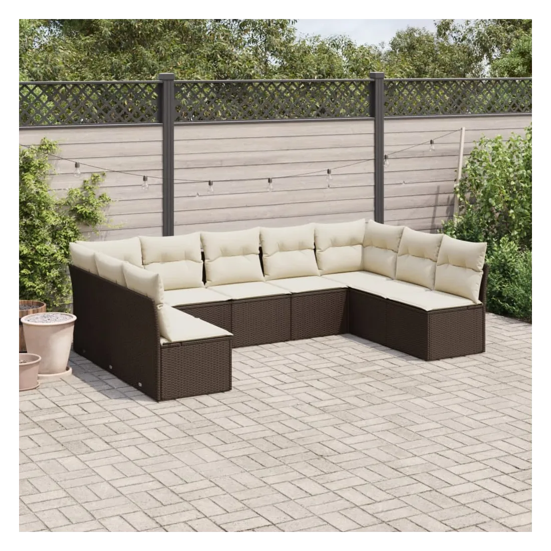 Cet ensemble de canapés de jardin est le complément parfait de votre arrière-cour, terrasse ou patio, offrant un espace confortable et accueillant pour discuter avec la famille et les amis ou simplement se détendre et profiter de l'extérieur. Matériau durable : la résine tressée, également connue sous le nom de poly rotin, est un matériau synthétique solide et nécessitant peu d'entretien qui ressemble au rotin naturel. Il est léger, facile à nettoyer et couramment utilisé pour les meubles d'extérieur en raison de sa durabilité et de ses propriétés de résistance aux intempéries.Fonction de rangement avec sac résistant à l'eau : chaque siège de jardin dispose d'un espace de rangement sous l'assise, complété par un sac résistant à l'eau pour ranger les coussins, les jouets et d'autres objets. Les sacs intérieurs sont dotés d'un couvercle et peuvent être solidement fixés aux sièges à l'aide de bandes auto-agrippantes pour plus de stabilité.Housse amovible et lavable : ces coussins de siège sont dotés de housses amovibles pour un lavage et un entretien faciles.Conception modulaire : cet ensemble de meubles d'extérieur a une conception modulaire, ce qui le rend complètement flexible et facile à déplacer, afin que vous puissiez créer un agencement de meubles d'extérieur personnalisé. Bon à savoir :Pour que vos meubles d'extérieur restent beaux, nous vous recommandons de les protéger avec une housse imperméable.