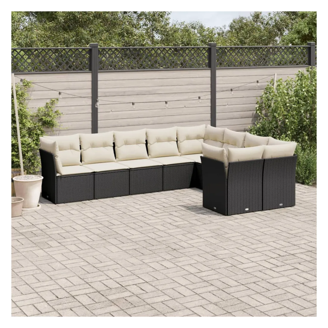 Cet ensemble de canapés de jardin est le complément parfait de votre arrière-cour, terrasse ou patio, offrant un espace confortable et accueillant pour discuter avec la famille et les amis ou simplement se détendre et profiter de l'extérieur. Matériau durable : la résine tressée, également connue sous le nom de poly rotin, est un matériau synthétique solide et nécessitant peu d'entretien qui ressemble au rotin naturel. Il est léger, facile à nettoyer et couramment utilisé pour les meubles d'extérieur en raison de sa durabilité et de ses propriétés de résistance aux intempéries.Fonction de rangement avec sac résistant à l'eau : chaque siège de jardin dispose d'un espace de rangement sous l'assise, complété par un sac résistant à l'eau pour ranger les coussins, les jouets et d'autres objets. Les sacs intérieurs sont dotés d'un couvercle et peuvent être solidement fixés aux sièges à l'aide de bandes auto-agrippantes pour plus de stabilité.Housse amovible et lavable : ces coussins de siège sont dotés de housses amovibles pour un lavage et un entretien faciles.Conception modulaire : cet ensemble de meubles d'extérieur a une conception modulaire, ce qui le rend complètement flexible et facile à déplacer, afin que vous puissiez créer un agencement de meubles d'extérieur personnalisé. Bon à savoir :Pour que vos meubles d'extérieur restent beaux, nous vous recommandons de les protéger avec une housse imperméable.