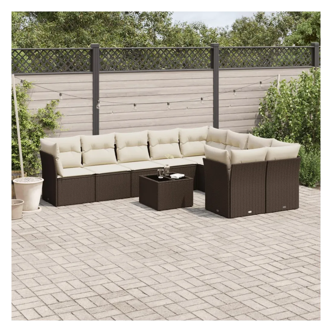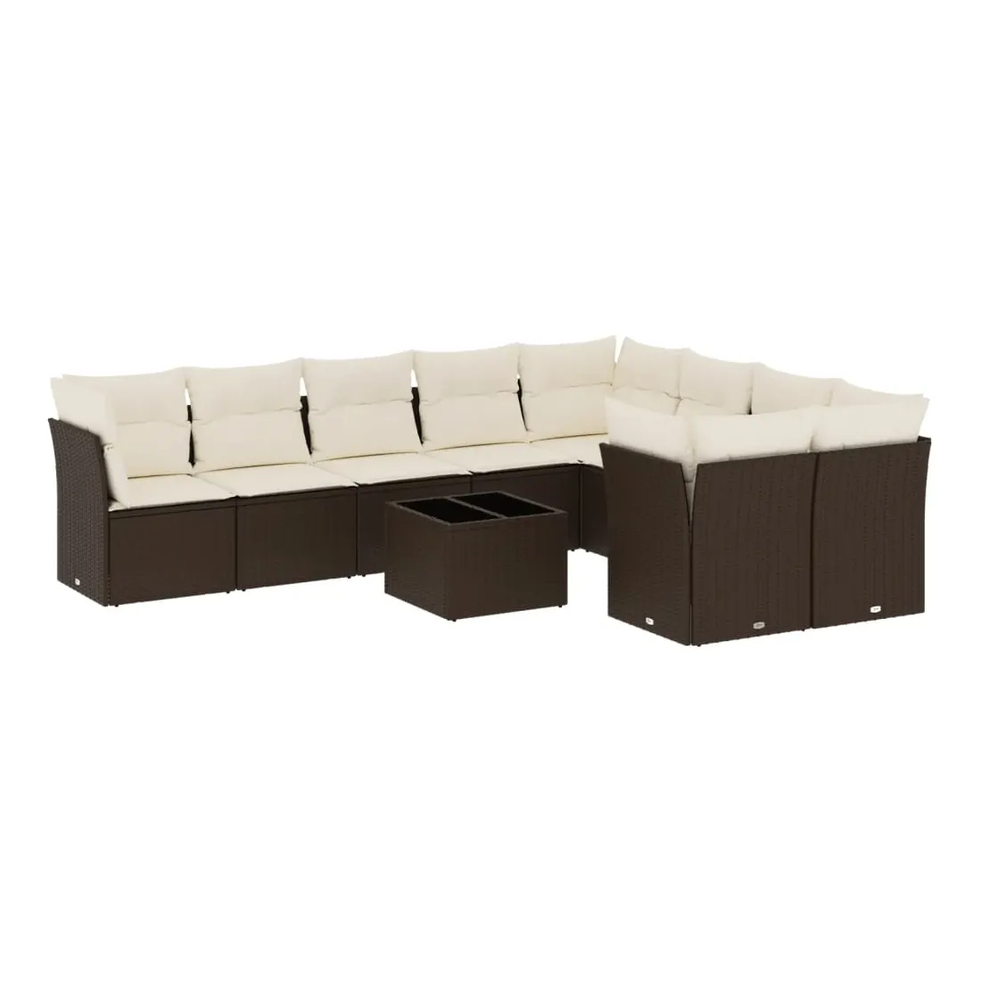 Salon de jardin 10 pcs avec coussins marron résine tressée
