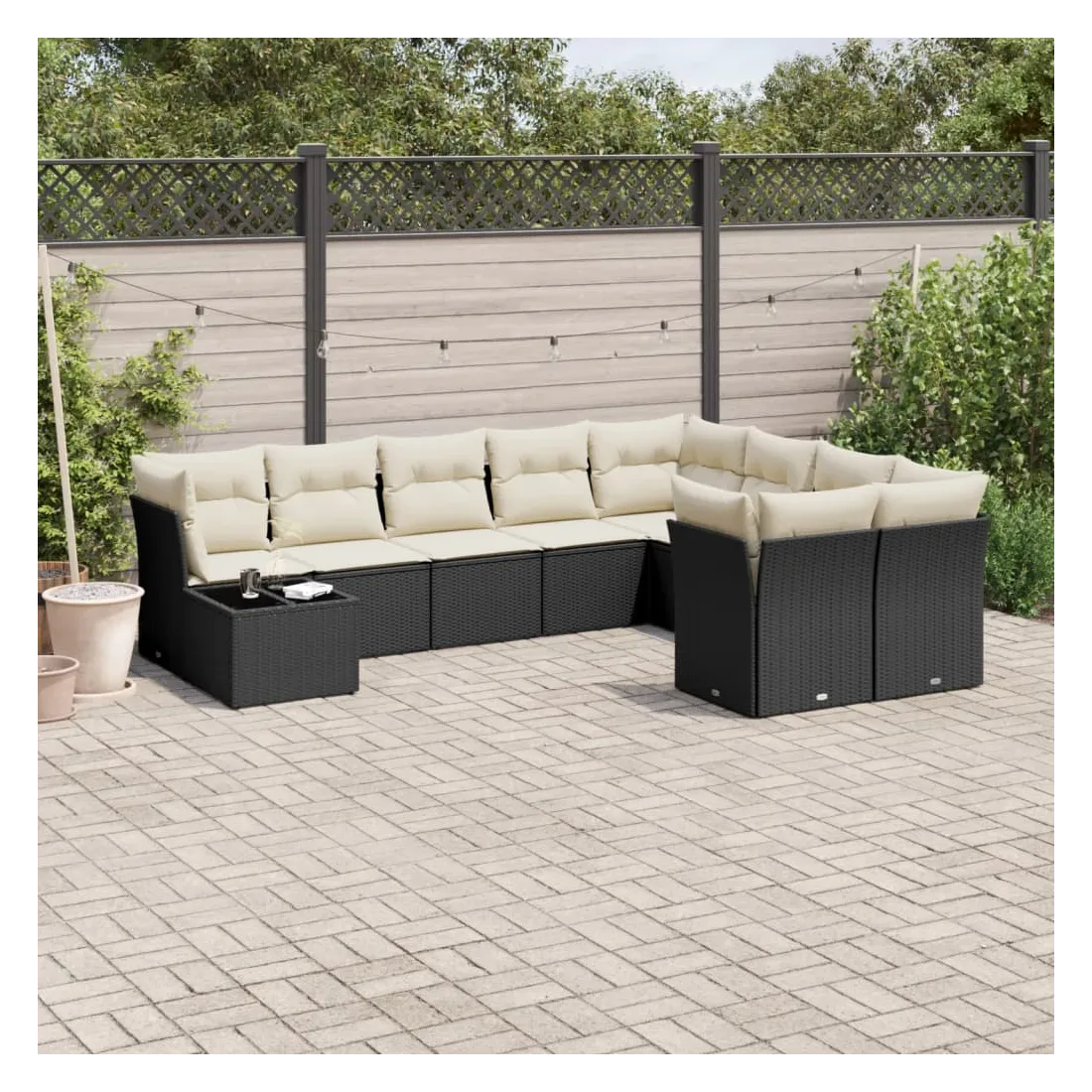 Cet ensemble de canapés de jardin est le complément parfait de votre arrière-cour, terrasse ou patio, offrant un espace confortable et accueillant pour discuter avec la famille et les amis ou simplement se détendre et profiter de l'extérieur. Matériau durable : la résine tressée, également connue sous le nom de poly rotin, est un matériau synthétique solide et nécessitant peu d'entretien qui ressemble au rotin naturel. Il est léger, facile à nettoyer et couramment utilisé pour les meubles d'extérieur en raison de sa durabilité et de ses propriétés de résistance aux intempéries.Fonction de rangement avec sac résistant à l'eau : chaque siège de jardin dispose d'un espace de rangement sous l'assise, complété par un sac résistant à l'eau pour ranger les coussins, les jouets et d'autres objets. Les sacs intérieurs sont dotés d'un couvercle et peuvent être solidement fixés aux sièges à l'aide de bandes auto-agrippantes pour plus de stabilité.Housse amovible et lavable : ces coussins de siège sont dotés de housses amovibles pour un lavage et un entretien faciles.Conception modulaire : cet ensemble de meubles d'extérieur a une conception modulaire, ce qui le rend complètement flexible et facile à déplacer, afin que vous puissiez créer un agencement de meubles d'extérieur personnalisé. Bon à savoir :Pour que vos meubles d'extérieur restent beaux, nous vous recommandons de les protéger avec une housse imperméable.