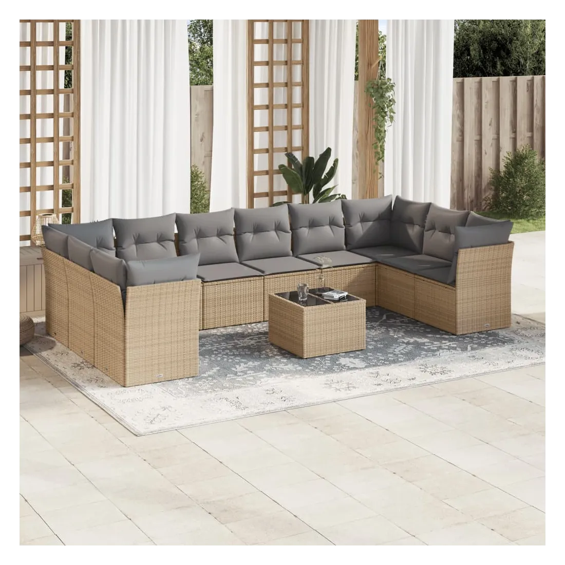 Cet ensemble de canapés de jardin est le complément parfait de votre arrière-cour, terrasse ou patio, offrant un espace confortable et accueillant pour discuter avec la famille et les amis ou simplement se détendre et profiter de l'extérieur. Matériau durable : la résine tressée, également connue sous le nom de poly rotin, est un matériau synthétique solide et nécessitant peu d'entretien qui ressemble au rotin naturel. Il est léger, facile à nettoyer et couramment utilisé pour les meubles d'extérieur en raison de sa durabilité et de ses propriétés de résistance aux intempéries.Fonction de rangement avec sac résistant à l'eau : chaque siège de jardin dispose d'un espace de rangement sous l'assise, complété par un sac résistant à l'eau pour ranger les coussins, les jouets et d'autres objets. Les sacs intérieurs sont dotés d'un couvercle et peuvent être solidement fixés aux sièges à l'aide de bandes auto-agrippantes pour plus de stabilité.Dessus en verre : le dessus de la table d'extérieur est fabriqué en verre trempé solide et durable, ce qui le rend facile à nettoyer avec un chiffon humide et ajoute une touche d'élégance à votre espace extérieur.Housse amovible et lavable : ces coussins de siège sont dotés de housses amovibles pour un lavage et un entretien faciles.Conception modulaire : cet ensemble de meubles d'extérieur a une conception modulaire, ce qui le rend complètement flexible et facile à déplacer, afin que vous puissiez créer un agencement de meubles d'extérieur personnalisé. Bon à savoir :Pour que vos meubles d'extérieur restent beaux, nous vous recommandons de les protéger avec une housse imperméable.
