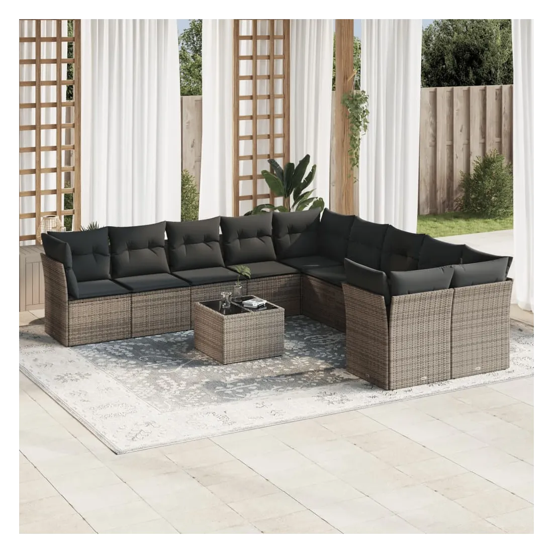 Cet ensemble de canapés de jardin est le complément parfait de votre arrière-cour, terrasse ou patio, offrant un espace confortable et accueillant pour discuter avec la famille et les amis ou simplement se détendre et profiter de l'extérieur. Matériau durable : la résine tressée, également connue sous le nom de poly rotin, est un matériau synthétique solide et nécessitant peu d'entretien qui ressemble au rotin naturel. Il est léger, facile à nettoyer et couramment utilisé pour les meubles d'extérieur en raison de sa durabilité et de ses propriétés de résistance aux intempéries.Fonction de rangement avec sac résistant à l'eau : chaque siège de jardin dispose d'un espace de rangement sous l'assise, complété par un sac résistant à l'eau pour ranger les coussins, les jouets et d'autres objets. Les sacs intérieurs sont dotés d'un couvercle et peuvent être solidement fixés aux sièges à l'aide de bandes auto-agrippantes pour plus de stabilité.Dessus en verre : le dessus de la table d'extérieur est fabriqué en verre trempé solide et durable, ce qui le rend facile à nettoyer avec un chiffon humide et ajoute une touche d'élégance à votre espace extérieur.Housse amovible et lavable : ces coussins de siège sont dotés de housses amovibles pour un lavage et un entretien faciles.Conception modulaire : cet ensemble de meubles d'extérieur a une conception modulaire, ce qui le rend complètement flexible et facile à déplacer, afin que vous puissiez créer un agencement de meubles d'extérieur personnalisé. Bon à savoir :Pour que vos meubles d'extérieur restent beaux, nous vous recommandons de les protéger avec une housse imperméable.