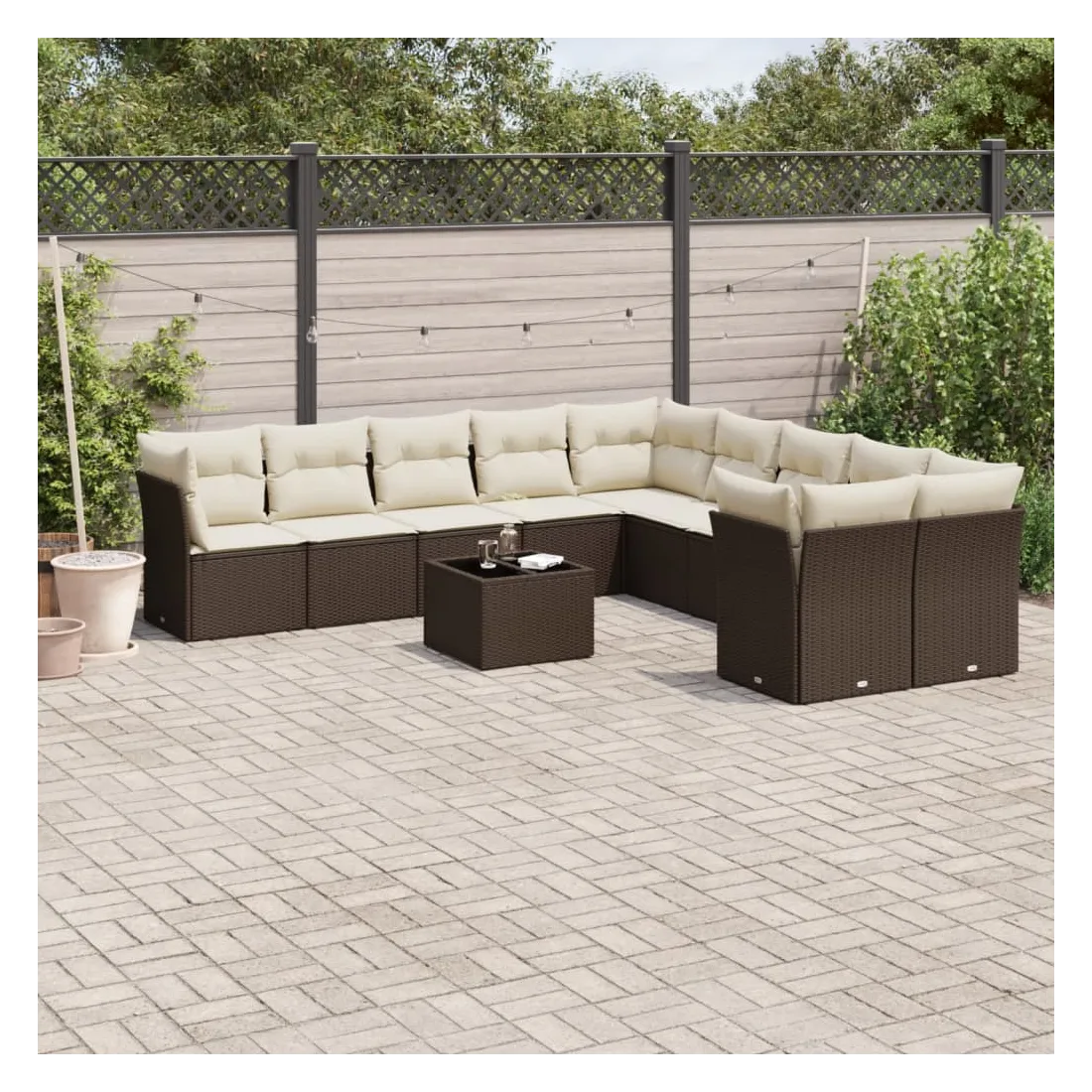 Cet ensemble de canapés de jardin est le complément parfait de votre arrière-cour, terrasse ou patio, offrant un espace confortable et accueillant pour discuter avec la famille et les amis ou simplement se détendre et profiter de l'extérieur. Matériau durable : la résine tressée, également connue sous le nom de poly rotin, est un matériau synthétique solide et nécessitant peu d'entretien qui ressemble au rotin naturel. Il est léger, facile à nettoyer et couramment utilisé pour les meubles d'extérieur en raison de sa durabilité et de ses propriétés de résistance aux intempéries.Fonction de rangement avec sac résistant à l'eau : chaque siège de jardin dispose d'un espace de rangement sous l'assise, complété par un sac résistant à l'eau pour ranger les coussins, les jouets et d'autres objets. Les sacs intérieurs sont dotés d'un couvercle et peuvent être solidement fixés aux sièges à l'aide de bandes auto-agrippantes pour plus de stabilité.Dessus en verre : le dessus de la table d'extérieur est fabriqué en verre trempé solide et durable, ce qui le rend facile à nettoyer avec un chiffon humide et ajoute une touche d'élégance à votre espace extérieur.Housse amovible et lavable : ces coussins de siège sont dotés de housses amovibles pour un lavage et un entretien faciles.Conception modulaire : cet ensemble de meubles d'extérieur a une conception modulaire, ce qui le rend complètement flexible et facile à déplacer, afin que vous puissiez créer un agencement de meubles d'extérieur personnalisé. Bon à savoir :Pour que vos meubles d'extérieur restent beaux, nous vous recommandons de les protéger avec une housse imperméable.