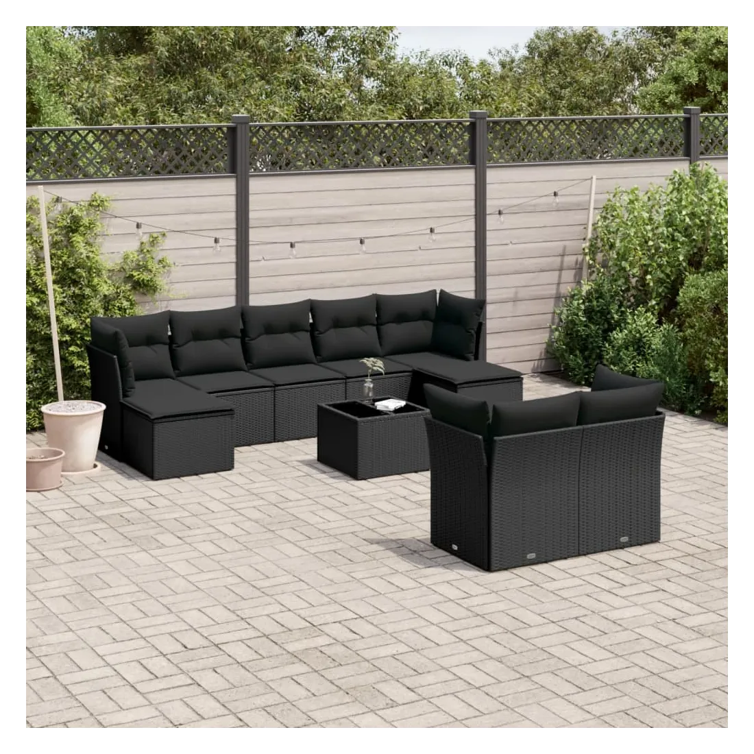 Cet ensemble de canapés de jardin est le complément parfait de votre arrière-cour, terrasse ou patio, offrant un espace confortable et accueillant pour discuter avec la famille et les amis ou simplement se détendre et profiter de l'extérieur. Matériau durable : la résine tressée, également connue sous le nom de poly rotin, est un matériau synthétique solide et nécessitant peu d'entretien qui ressemble au rotin naturel. Il est léger, facile à nettoyer et couramment utilisé pour les meubles d'extérieur en raison de sa durabilité et de ses propriétés de résistance aux intempéries.Fonction de rangement avec sac résistant à l'eau : chaque siège de jardin dispose d'un espace de rangement sous l'assise, complété par un sac résistant à l'eau pour ranger les coussins, les jouets et d'autres objets. Les sacs intérieurs sont dotés d'un couvercle et peuvent être solidement fixés aux sièges à l'aide de bandes auto-agrippantes pour plus de stabilité.Dessus en verre : le dessus de la table d'extérieur est fabriqué en verre trempé solide et durable, ce qui le rend facile à nettoyer avec un chiffon humide et ajoute une touche d'élégance à votre espace extérieur.Housse amovible et lavable : ces coussins de siège sont dotés de housses amovibles pour un lavage et un entretien faciles.Conception modulaire : cet ensemble de meubles d'extérieur a une conception modulaire, ce qui le rend complètement flexible et facile à déplacer, afin que vous puissiez créer un agencement de meubles d'extérieur personnalisé. Bon à savoir :Pour que vos meubles d'extérieur restent beaux, nous vous recommandons de les protéger avec une housse imperméable.