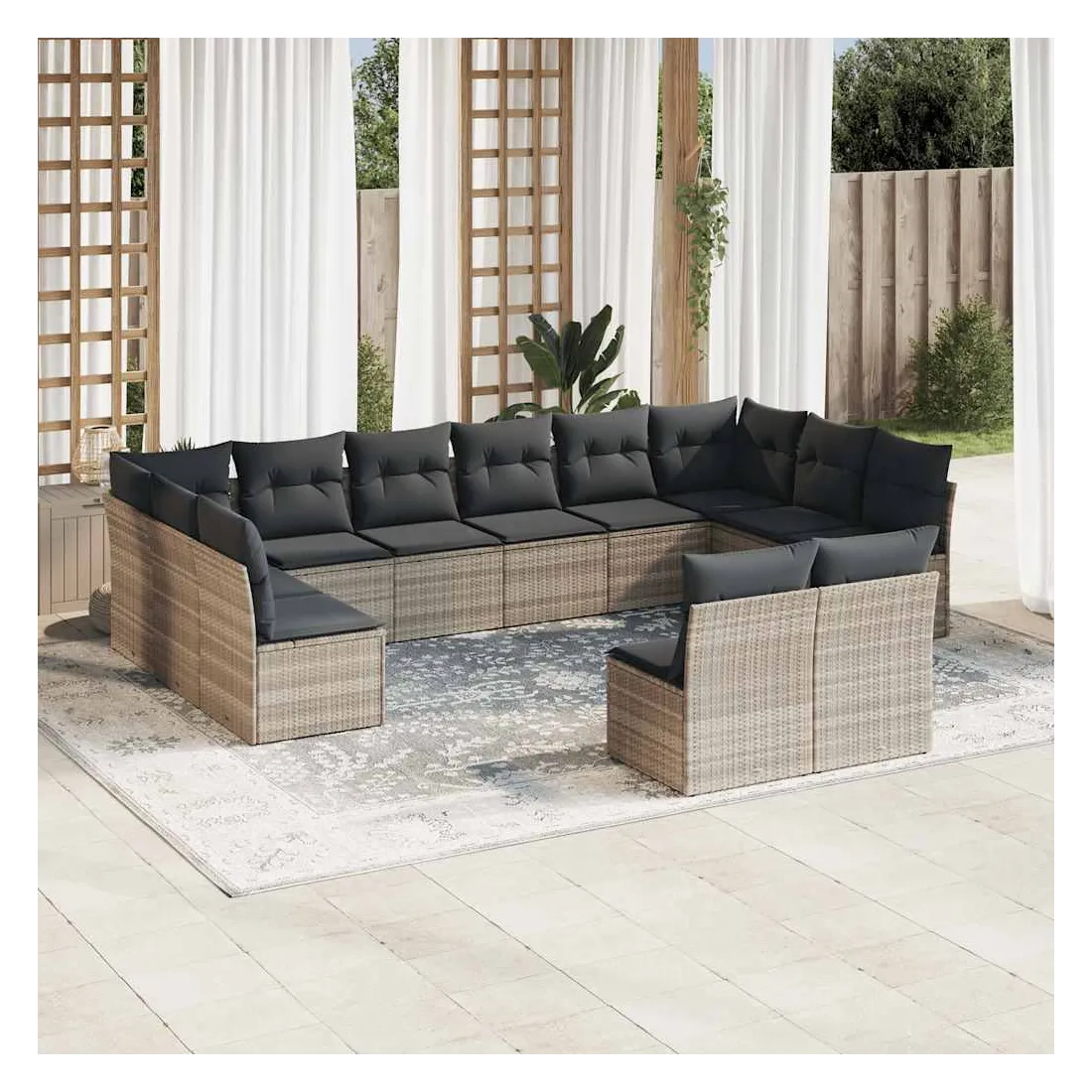 Cet ensemble de canapés de jardin est le complément parfait de votre arrière-cour, terrasse ou patio, offrant un espace confortable et accueillant pour discuter avec la famille et les amis ou simplement se détendre et profiter de l'extérieur. Matériau durable : la résine tressée, également connue sous le nom de poly rotin, est un matériau synthétique solide et nécessitant peu d'entretien qui ressemble au rotin naturel. Il est léger, facile à nettoyer et couramment utilisé pour les meubles d'extérieur en raison de sa durabilité et de ses propriétés de résistance aux intempéries.Fonction de rangement avec sac résistant à l'eau : chaque siège de jardin dispose d'un espace de rangement sous l'assise, complété par un sac résistant à l'eau pour ranger les coussins, les jouets et d'autres objets. Les sacs intérieurs sont dotés d'un couvercle et peuvent être solidement fixés aux sièges à l'aide de bandes auto-agrippantes pour plus de stabilité.Housse amovible et lavable : ces coussins de siège sont dotés de housses amovibles pour un lavage et un entretien faciles.Conception modulaire : cet ensemble de meubles d'extérieur a une conception modulaire, ce qui le rend complètement flexible et facile à déplacer, afin que vous puissiez créer un agencement de meubles d'extérieur personnalisé. Bon à savoir :Pour que vos meubles d'extérieur restent beaux, nous vous recommandons de les protéger avec une housse imperméable.