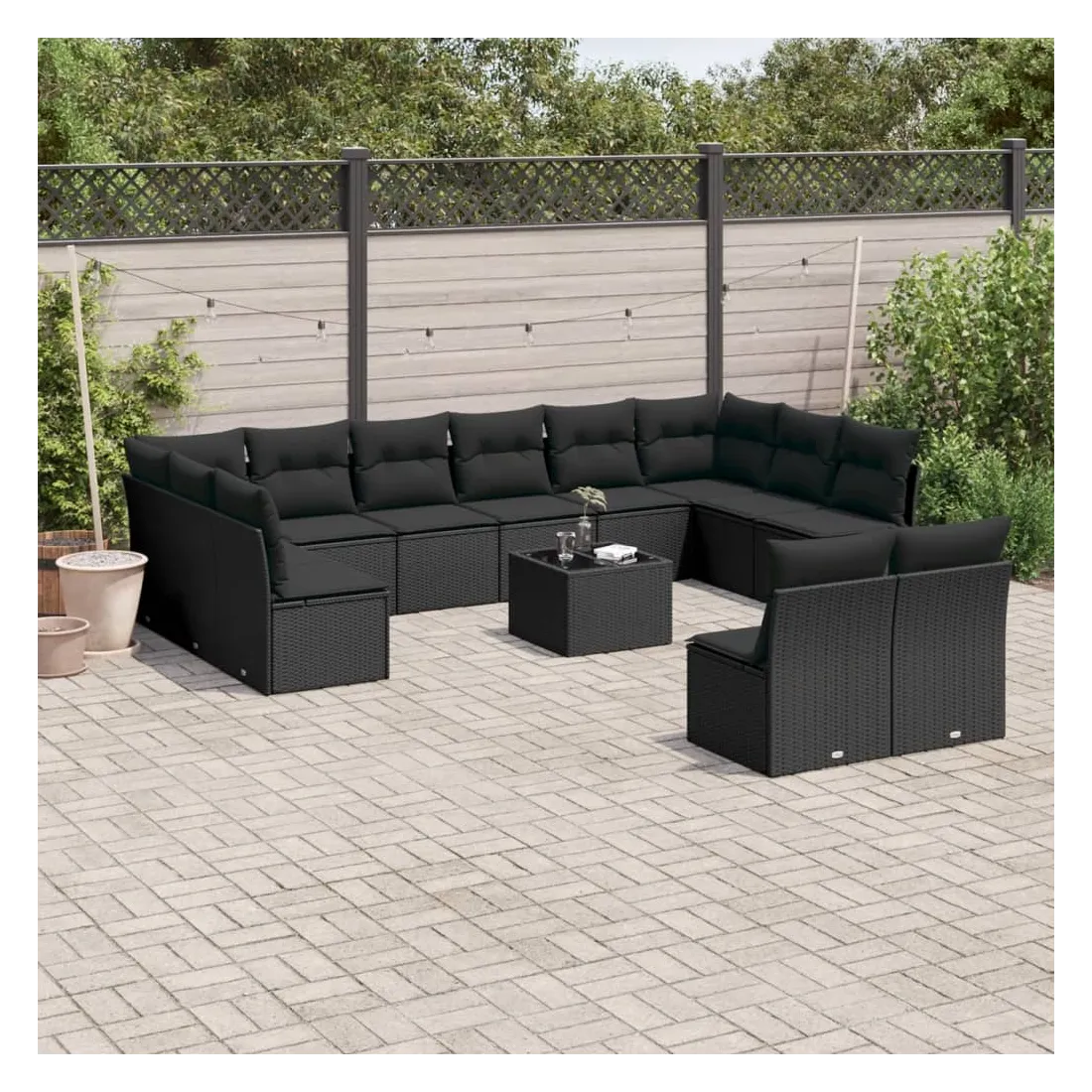 Cet ensemble de canapés de jardin est le complément parfait de votre arrière-cour, terrasse ou patio, offrant un espace confortable et accueillant pour discuter avec la famille et les amis ou simplement se détendre et profiter de l'extérieur. Matériau durable : la résine tressée, également connue sous le nom de poly rotin, est un matériau synthétique solide et nécessitant peu d'entretien qui ressemble au rotin naturel. Il est léger, facile à nettoyer et couramment utilisé pour les meubles d'extérieur en raison de sa durabilité et de ses propriétés de résistance aux intempéries.Fonction de rangement avec sac résistant à l'eau : chaque siège de jardin dispose d'un espace de rangement sous l'assise, complété par un sac résistant à l'eau pour ranger les coussins, les jouets et d'autres objets. Les sacs intérieurs sont dotés d'un couvercle et peuvent être solidement fixés aux sièges à l'aide de bandes auto-agrippantes pour plus de stabilité.Dessus en verre : le dessus de la table d'extérieur est fabriqué en verre trempé solide et durable, ce qui le rend facile à nettoyer avec un chiffon humide et ajoute une touche d'élégance à votre espace extérieur.Housse amovible et lavable : ces coussins de siège sont dotés de housses amovibles pour un lavage et un entretien faciles.Conception modulaire : cet ensemble de meubles d'extérieur a une conception modulaire, ce qui le rend complètement flexible et facile à déplacer, afin que vous puissiez créer un agencement de meubles d'extérieur personnalisé. Bon à savoir :Pour que vos meubles d'extérieur restent beaux, nous vous recommandons de les protéger avec une housse imperméable.
