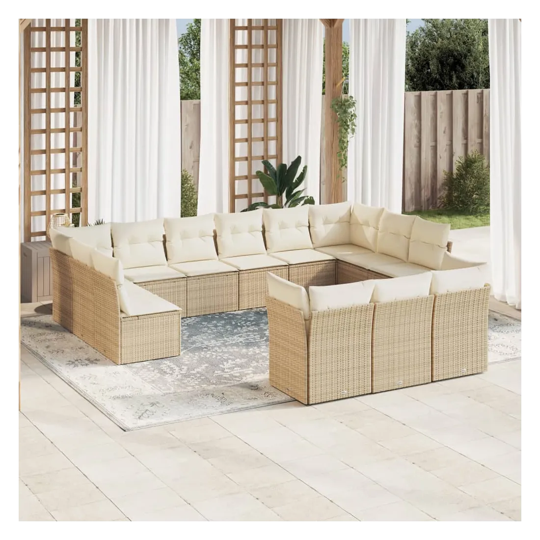 Cet ensemble de canapés de jardin est le complément parfait de votre arrière-cour, terrasse ou patio, offrant un espace confortable et accueillant pour discuter avec la famille et les amis ou simplement se détendre et profiter de l'extérieur. Matériau durable : la résine tressée, également connue sous le nom de poly rotin, est un matériau synthétique solide et nécessitant peu d'entretien qui ressemble au rotin naturel. Il est léger, facile à nettoyer et couramment utilisé pour les meubles d'extérieur en raison de sa durabilité et de ses propriétés de résistance aux intempéries.Fonction de rangement avec sac résistant à l'eau : chaque siège de jardin dispose d'un espace de rangement sous l'assise, complété par un sac résistant à l'eau pour ranger les coussins, les jouets et d'autres objets. Les sacs intérieurs sont dotés d'un couvercle et peuvent être solidement fixés aux sièges à l'aide de bandes auto-agrippantes pour plus de stabilité.Housse amovible et lavable : ces coussins de siège sont dotés de housses amovibles pour un lavage et un entretien faciles.Conception modulaire : cet ensemble de meubles d'extérieur a une conception modulaire, ce qui le rend complètement flexible et facile à déplacer, afin que vous puissiez créer un agencement de meubles d'extérieur personnalisé. Bon à savoir :Pour que vos meubles d'extérieur restent beaux, nous vous recommandons de les protéger avec une housse imperméable.