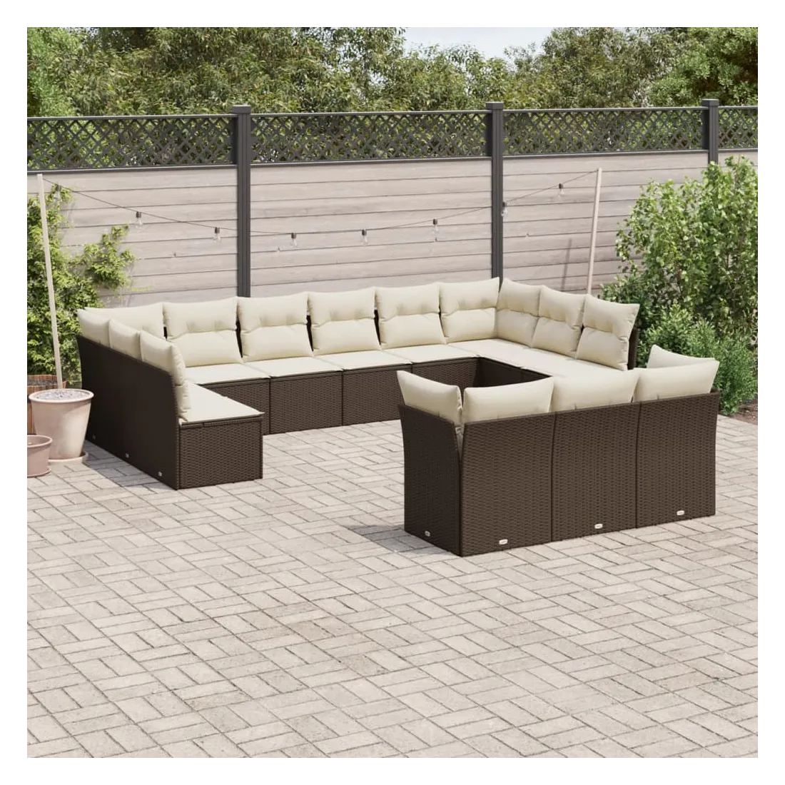 Cet ensemble de canapés de jardin est le complément parfait de votre arrière-cour, terrasse ou patio, offrant un espace confortable et accueillant pour discuter avec la famille et les amis ou simplement se détendre et profiter de l'extérieur. Matériau durable : la résine tressée, également connue sous le nom de poly rotin, est un matériau synthétique solide et nécessitant peu d'entretien qui ressemble au rotin naturel. Il est léger, facile à nettoyer et couramment utilisé pour les meubles d'extérieur en raison de sa durabilité et de ses propriétés de résistance aux intempéries.Fonction de rangement avec sac résistant à l'eau : chaque siège de jardin dispose d'un espace de rangement sous l'assise, complété par un sac résistant à l'eau pour ranger les coussins, les jouets et d'autres objets. Les sacs intérieurs sont dotés d'un couvercle et peuvent être solidement fixés aux sièges à l'aide de bandes auto-agrippantes pour plus de stabilité.Housse amovible et lavable : ces coussins de siège sont dotés de housses amovibles pour un lavage et un entretien faciles.Conception modulaire : cet ensemble de meubles d'extérieur a une conception modulaire, ce qui le rend complètement flexible et facile à déplacer, afin que vous puissiez créer un agencement de meubles d'extérieur personnalisé. Bon à savoir :Pour que vos meubles d'extérieur restent beaux, nous vous recommandons de les protéger avec une housse imperméable.