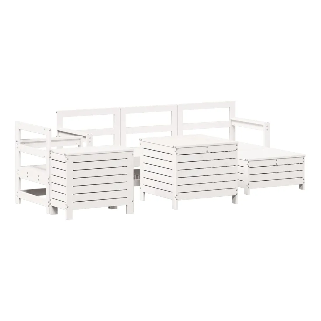 vidaXLCet ensemble de salon de jardin en bois avec un design à lattes sera un excellent complément à votre jardin, patio ou terrasse pour profiter d'un moment agréable avec votre famille ou vos amis. Matériau robuste et durable : le bois de pin massif est connu pour sa résistance et sa durabilité. Ses grains droits et ses nœuds distinctifs contribuent à son charme rustique. Bien ventilé et prévention de l'accumulation d'eau : la conception à lattes favorise une circulation optimale de l'air et empêche efficacement l'accumulation d'eau, assurant ainsi une assise sèche et confortable. Utilisation polyvalente : le repose-pied de jardin peut non seulement être utilisé pour s'asseoir ou se détendre, mais il peut également être utilisé comme table basse pour contenir vos boissons, votre nourriture et d'autres décorations. Table pratique : la table de jardin vous offre un endroit pratique pour atteindre facilement vos essentiels. Conception modulaire : cet ensemble de meubles d'extérieur a une conception modulaire, ce qui le rend complètement flexible et facile à déplacer, afin que vous puissiez créer un agencement de meubles d'extérieur personnalisé. Bon à savoir :Pour que vos meubles d'extérieur restent beaux, nous vous recommandons de les protéger avec une housse imperméable.