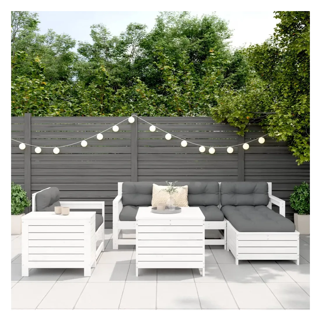 Salon de jardin 7 pcs blanc bois de pin massif