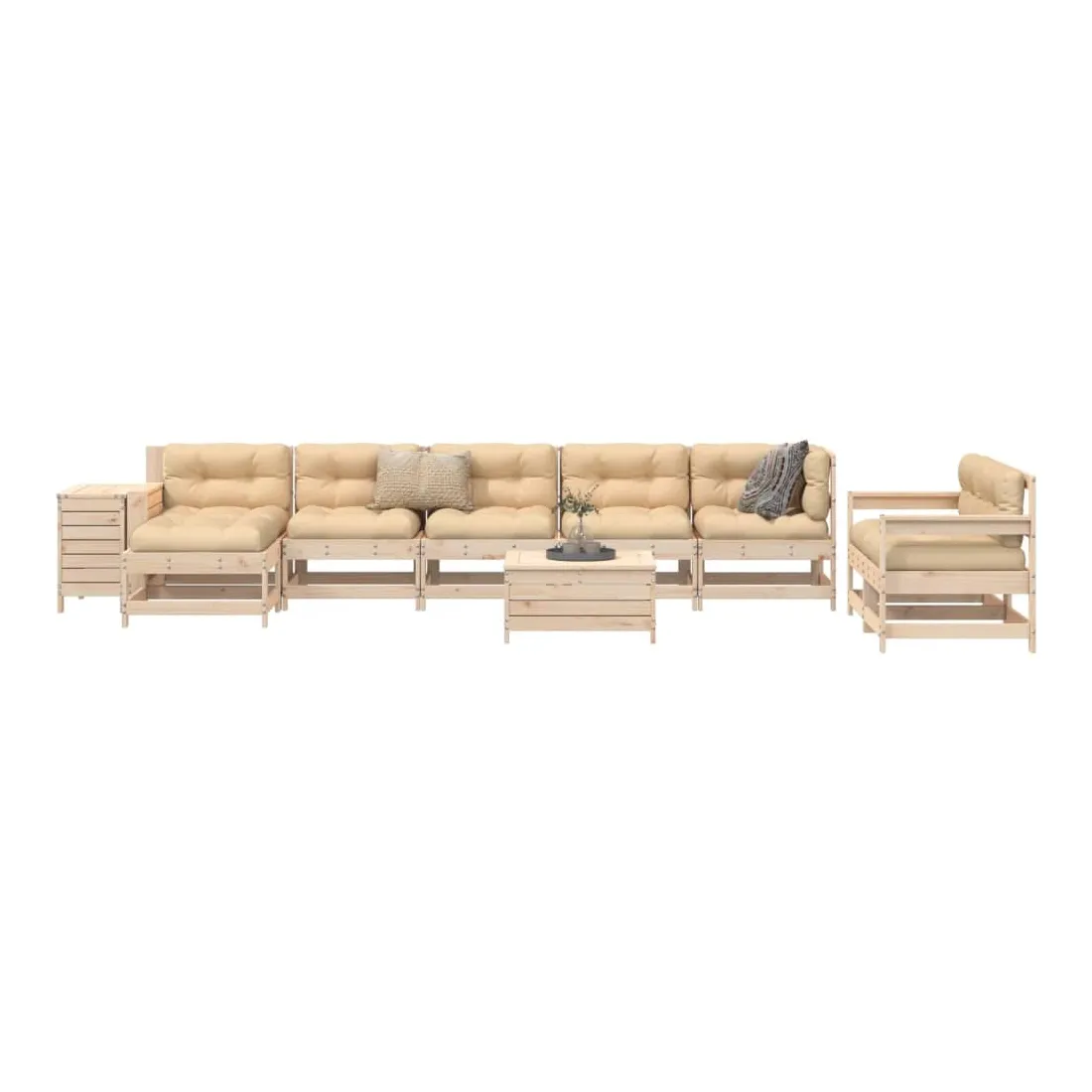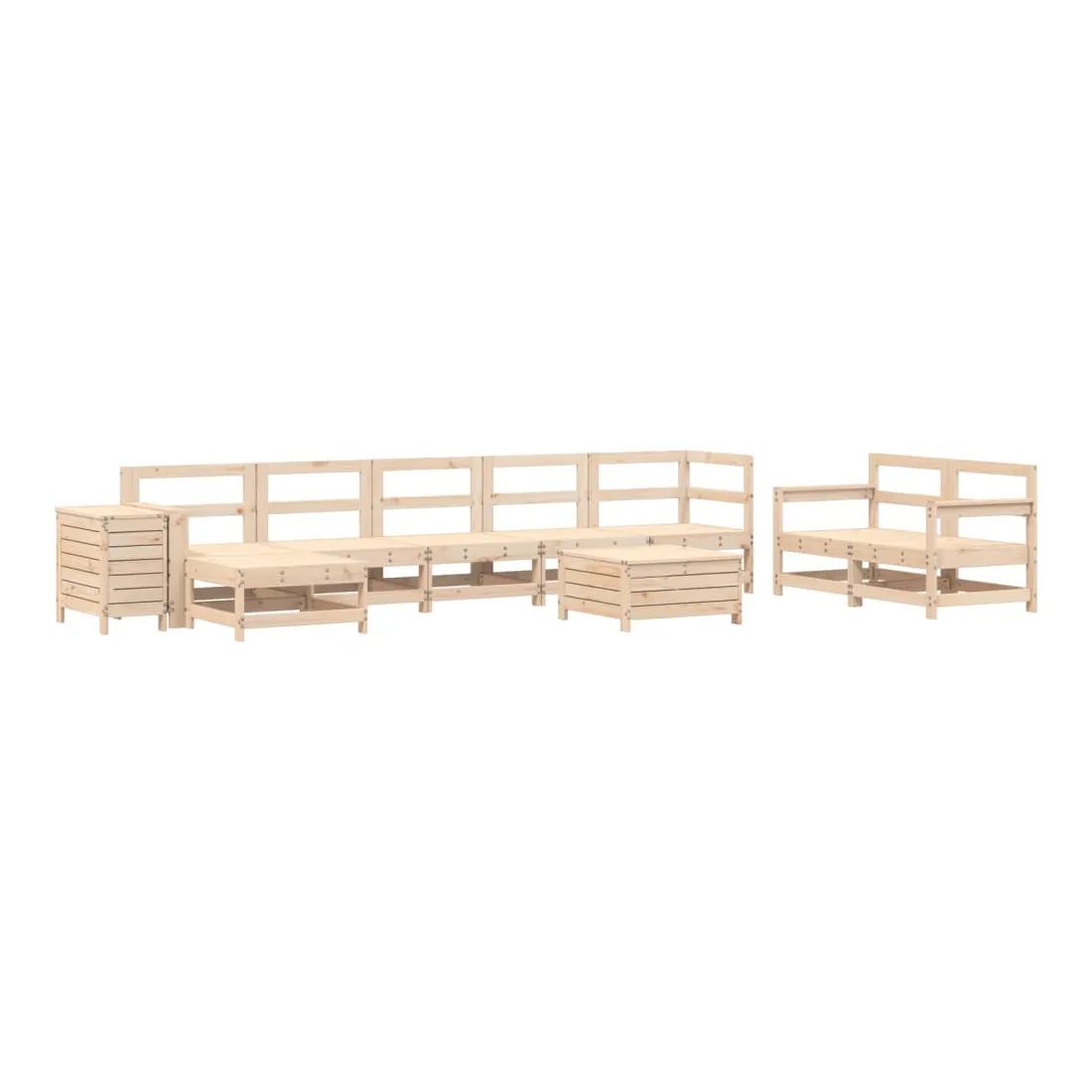 Cet ensemble de salon de jardin en bois avec un design à lattes sera un excellent complément à votre jardin, patio ou terrasse pour profiter d'un moment agréable avec votre famille ou vos amis. Matériau robuste et durable : le bois de pin massif est connu pour sa résistance et sa durabilité. Ses grains droits et ses nœuds distinctifs contribuent à son charme rustique. Bien ventilé et prévention de l'accumulation d'eau : la conception à lattes favorise une circulation optimale de l'air et empêche efficacement l'accumulation d'eau, assurant ainsi une assise sèche et confortable. Utilisation polyvalente : le repose-pied de jardin peut non seulement être utilisé pour s'asseoir ou se détendre, mais il peut également être utilisé comme table basse pour contenir vos boissons, votre nourriture et d'autres décorations. Table pratique : la table de jardin vous offre un endroit pratique pour atteindre facilement vos essentiels. Conception modulaire : cet ensemble de meubles d'extérieur a une conception modulaire, ce qui le rend complètement flexible et facile à déplacer, afin que vous puissiez créer un agencement de meubles d'extérieur personnalisé. Bon à savoir :Pour que vos meubles d'extérieur restent beaux, nous vous recommandons de les protéger avec une housse imperméable.
