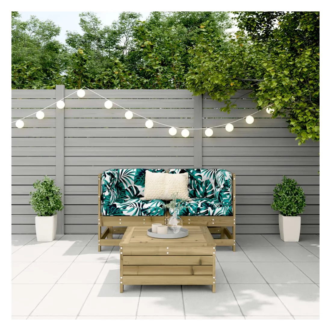 Cet ensemble de salon de jardin en bois avec un design à lattes sera un excellent complément à votre jardin, patio ou terrasse pour profiter d'un moment agréable avec votre famille ou vos amis. Matériau robuste et durable : le bois de pin massif est connu pour sa résistance et sa durabilité. Ses grains droits et ses nœuds distinctifs contribuent à son charme rustique. Il a été imprégné avec une solution de conservation et a subi un traitement en autoclave, ce qui renforce sa résistance à la pourriture et aux intempéries. Bien ventilé et prévention de l'accumulation d'eau : la conception à lattes favorise une circulation optimale de l'air et empêche efficacement l'accumulation d'eau, assurant ainsi une assise sèche et confortable. Utilisation polyvalente : le repose-pied de jardin peut non seulement être utilisé pour s'asseoir ou se détendre, mais il peut également être utilisé comme table basse pour contenir vos boissons, votre nourriture et d'autres décorations. Conception modulaire : cet ensemble de meubles d'extérieur a une conception modulaire, ce qui le rend complètement flexible et facile à déplacer, afin que vous puissiez créer un agencement de meubles d'extérieur personnalisé. Bon à savoir :Pour que vos meubles d'extérieur restent beaux, nous vous recommandons de les protéger avec une housse imperméable.