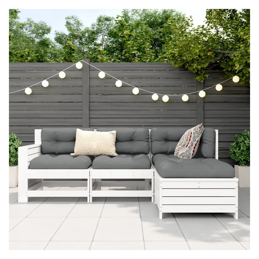 Cet ensemble de salon de jardin en bois avec un design à lattes sera un excellent complément à votre jardin, patio ou terrasse pour profiter d'un moment agréable avec votre famille ou vos amis. Matériau robuste et durable : le bois de pin massif est connu pour sa résistance et sa durabilité. Ses grains droits et ses nœuds distinctifs contribuent à son charme rustique. Bien ventilé et prévention de l'accumulation d'eau : la conception à lattes favorise une circulation optimale de l'air et empêche efficacement l'accumulation d'eau, assurant ainsi une assise sèche et confortable. Utilisation polyvalente : le repose-pied de jardin peut non seulement être utilisé pour s'asseoir ou se détendre, mais il peut également être utilisé comme table basse pour contenir vos boissons, votre nourriture et d'autres décorations. Table d'appoint pratique : ce mobilier d'extérieur comprend une table d'appoint pliable avec un ressort à gaz sur les accoudoirs, offrant un endroit pratique pour garder vos essentiels à portée de main. Conception modulaire : cet ensemble de meubles d'extérieur a une conception modulaire, ce qui le rend complètement flexible et facile à déplacer, afin que vous puissiez créer un agencement de meubles d'extérieur personnalisé. Bon à savoir :Pour que vos meubles d'extérieur restent beaux, nous vous recommandons de les protéger avec une housse imperméable.