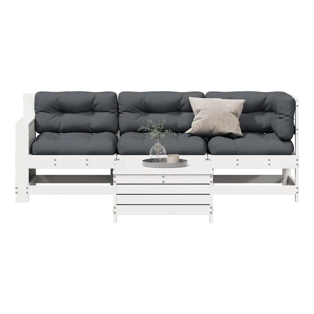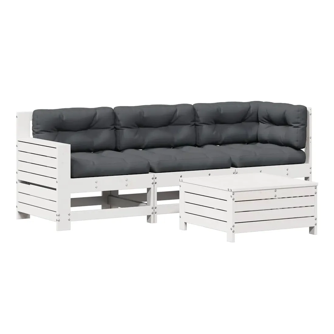 Salon de jardin 4 pcs avec coussins blanc bois de pin massif