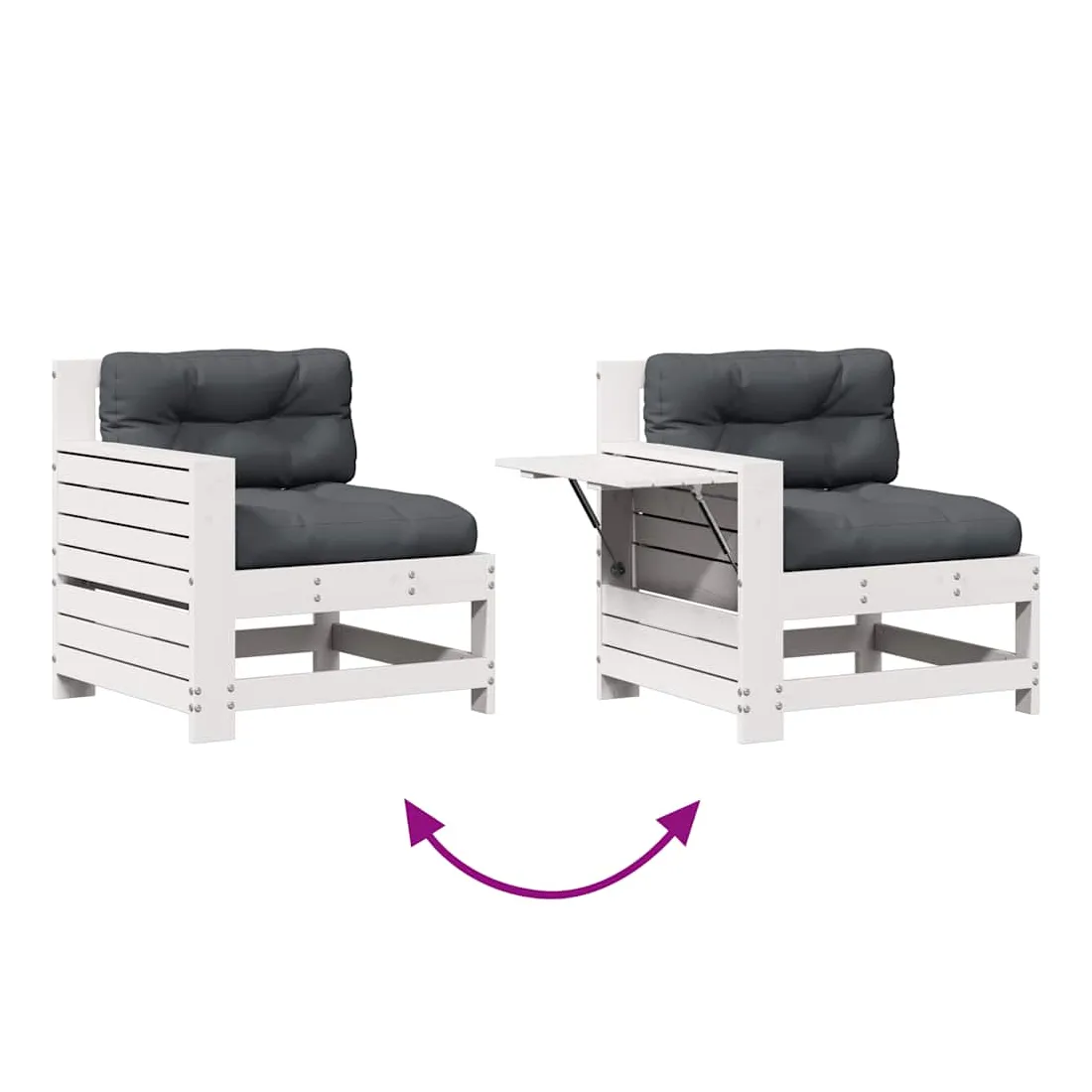 vidaXLCet ensemble de salon de jardin en bois avec un design à lattes sera un excellent complément à votre jardin, patio ou terrasse pour profiter d'un moment agréable avec votre famille ou vos amis. Bois de pin massif : le bois de pin massif est un matériau naturel magnifique. Le bois de pin a un grain droit et les nœuds donnent au matériau son aspect caractéristique et rustique.Expérience d'assise confortable : le dossier et l'accoudoir ajoutent un confort d'assise supplémentaire à l'ensemble de meubles de jardin. De plus, le coussin bien rembourré vous permet de vous asseoir confortablement.Utilisation polyvalente : le pouf d'extérieur avec couvercle peut non seulement être utilisé pour s'asseoir ou se détendre, mais il peut également être utilisé comme table basse pour contenir vos boissons, votre nourriture et le meuble de jardin dispose d'un espace de rangement sous le siège. Table d'appoint pratique : ce mobilier d'extérieur comprend une table d'appoint pliable avec un ressort à gaz sur les accoudoirs, offrant un endroit pratique pour garder vos essentiels à portée de main.Conception modulaire : cet ensemble de meubles d'extérieur a une conception modulaire, ce qui le rend complètement flexible et facile à déplacer, afin que vous puissiez créer un agencement de meubles d'extérieur personnalisé. Bon à savoir :Pour que vos meubles d'extérieur restent beaux, nous vous recommandons de les protéger avec une housse imperméable.